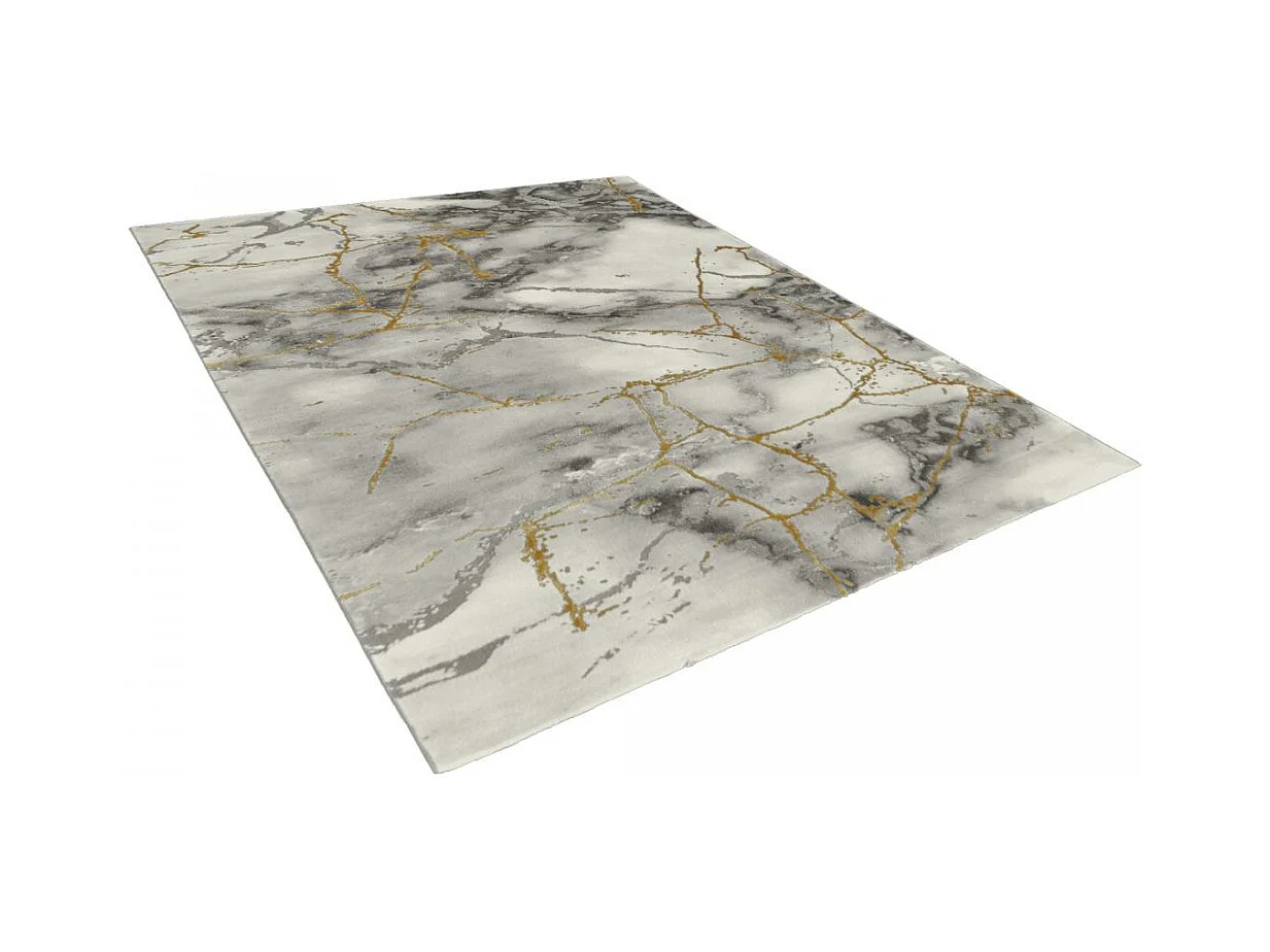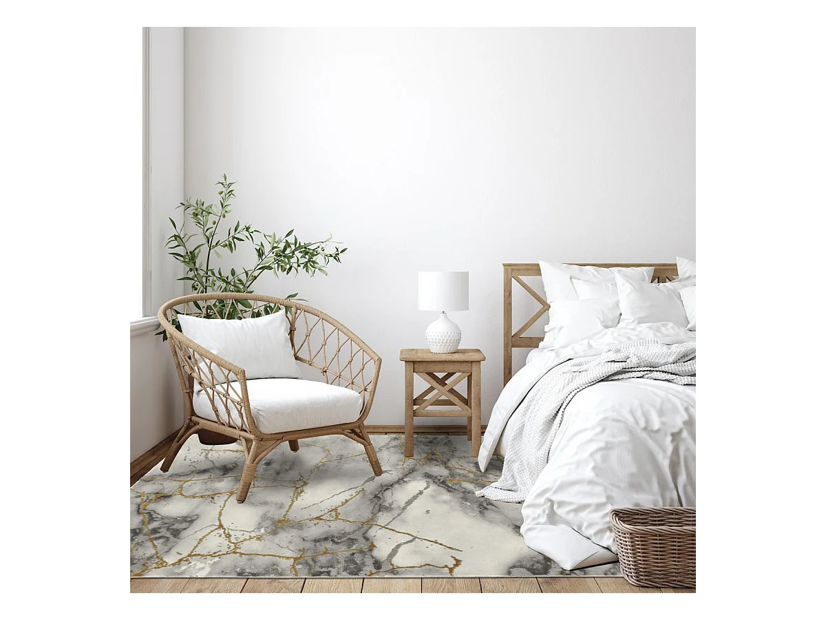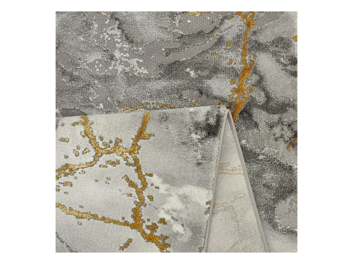 tapis chambre 80x150 tissé gris et or rectangle motif abstrait MARBAL