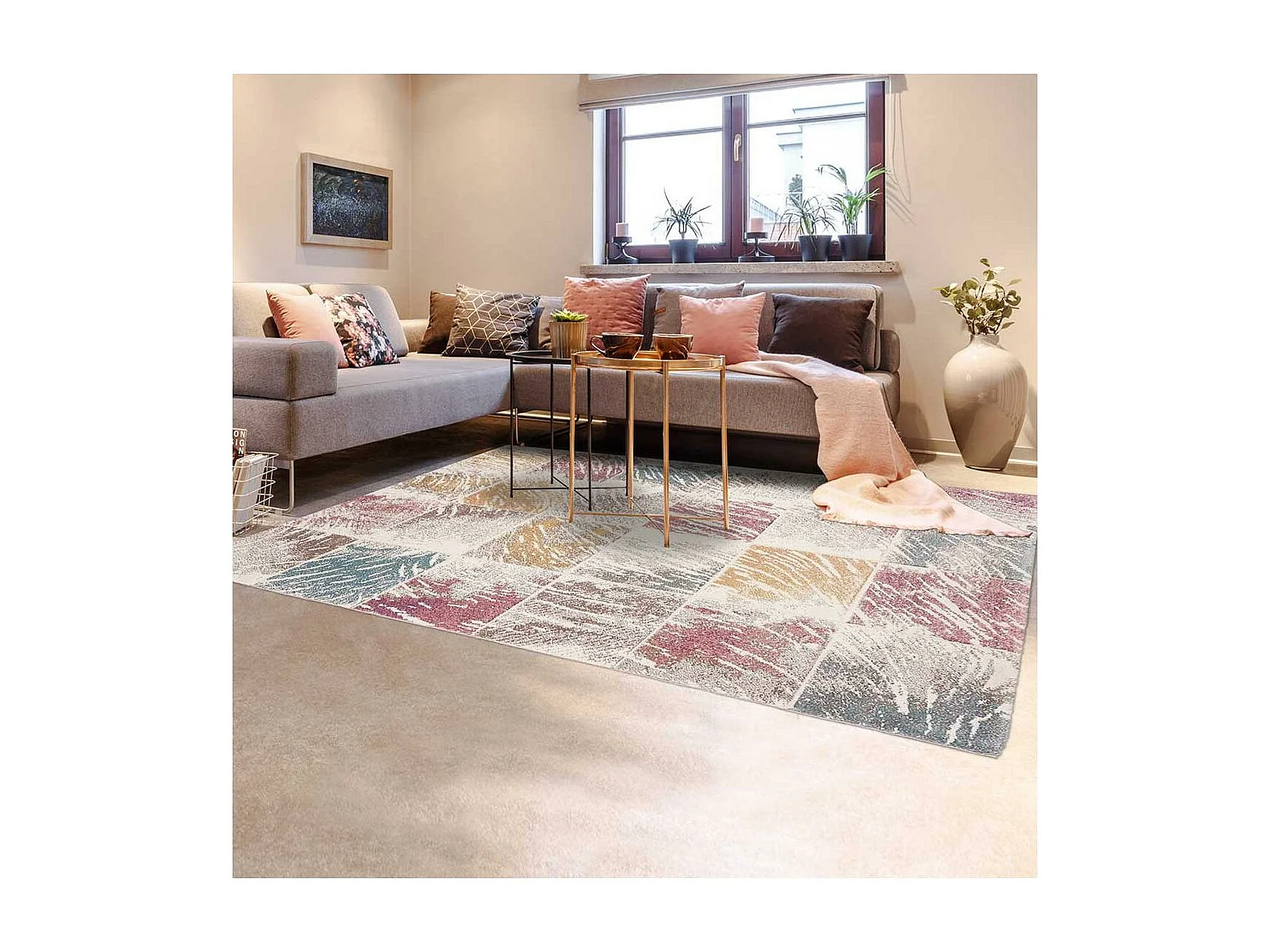 tapis chambre 80x150 tissé multicolore rectangle motif géométrique LYN8 BELO 2