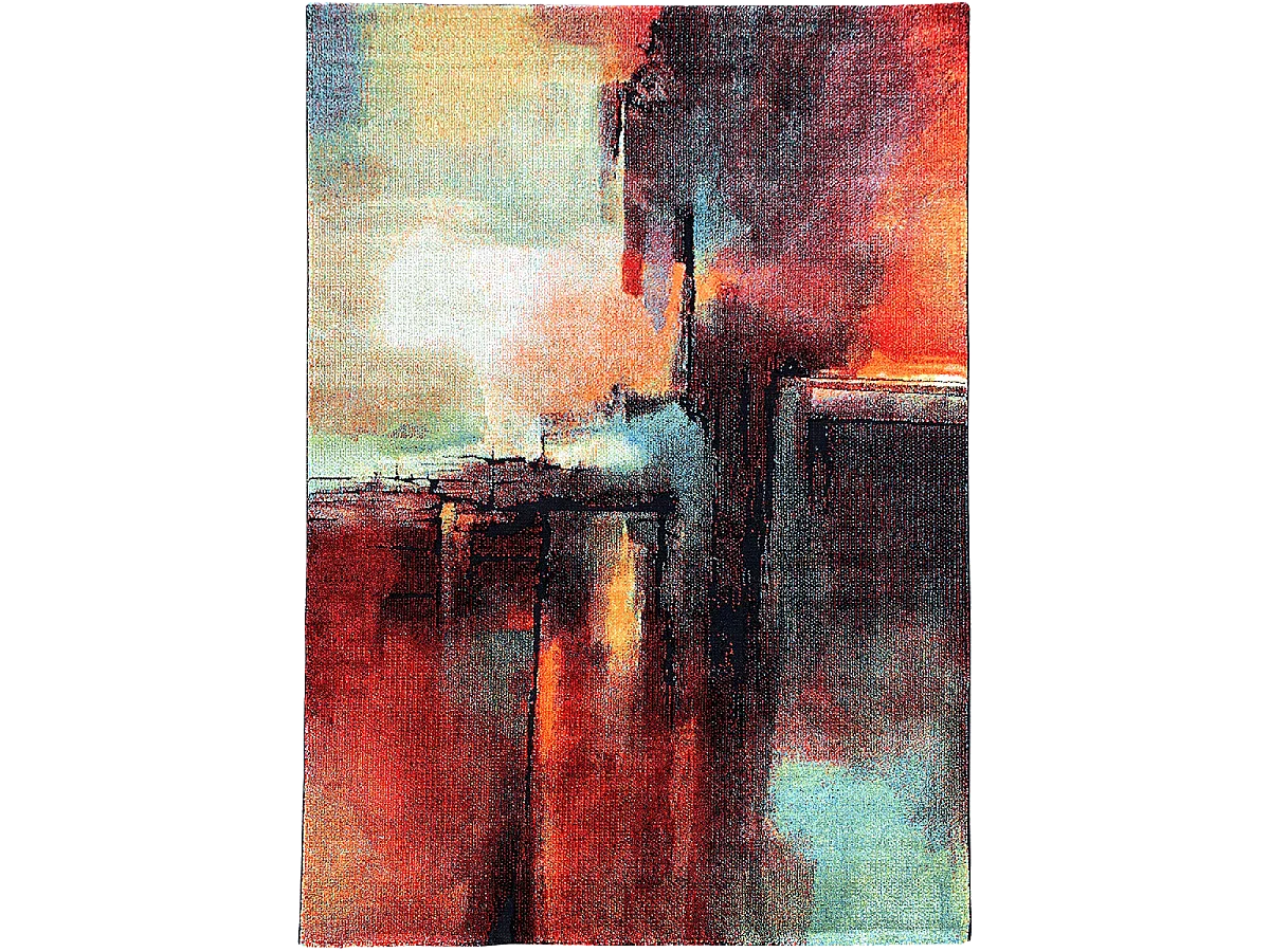 tapis chambre 80x150 tissé rouge et vert rectangle motif abstrait TABOR