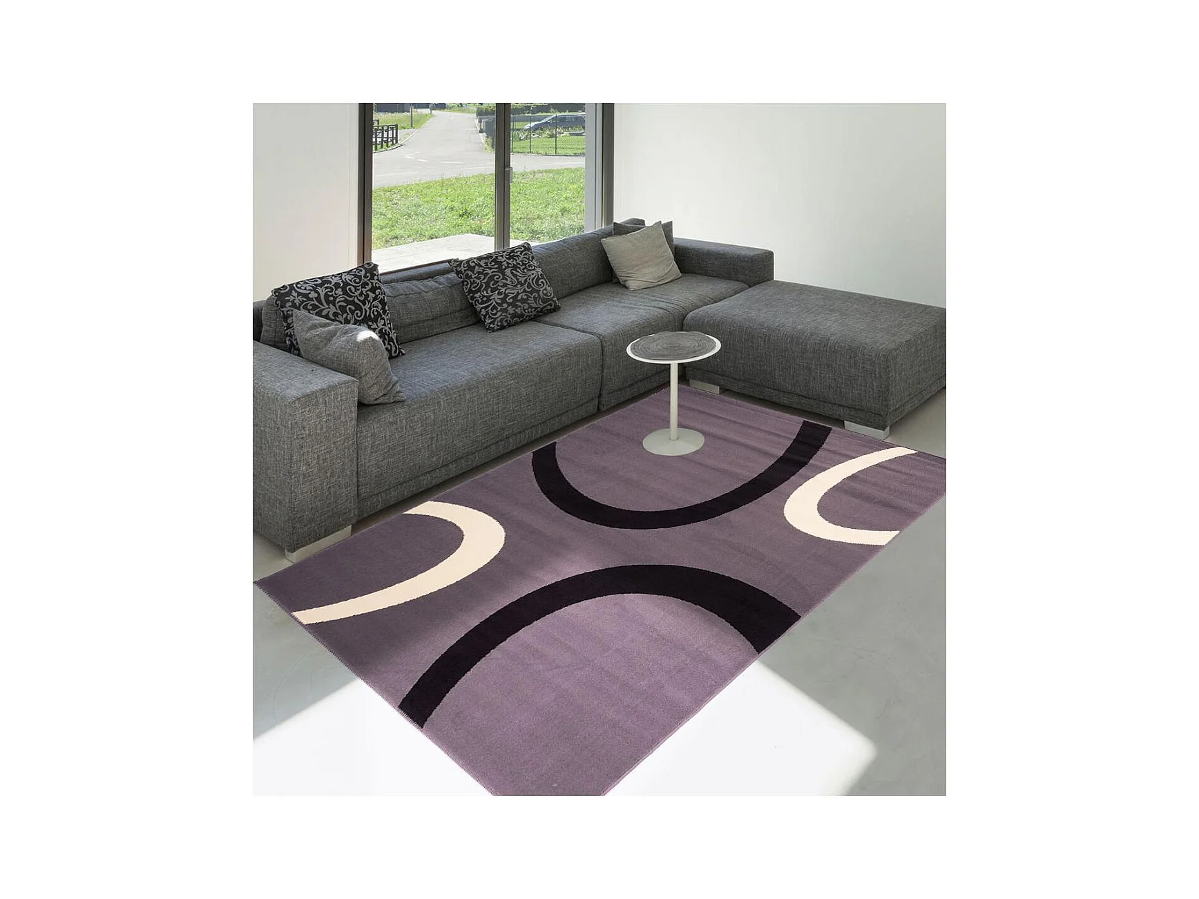 tapis chambre 80x150 tissé gris rectangle motif rond LYN1 TEMPO