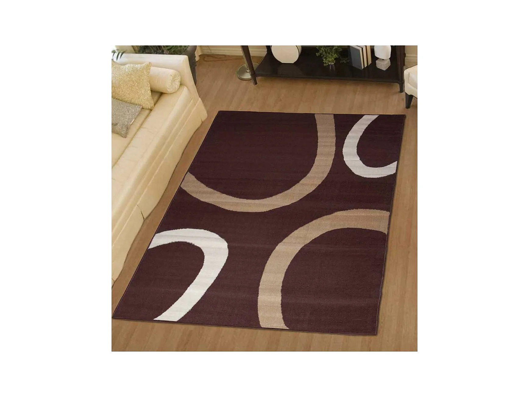 tapis chambre 80x150 tissé café rectangle motif rond LYN1 TEMPO
