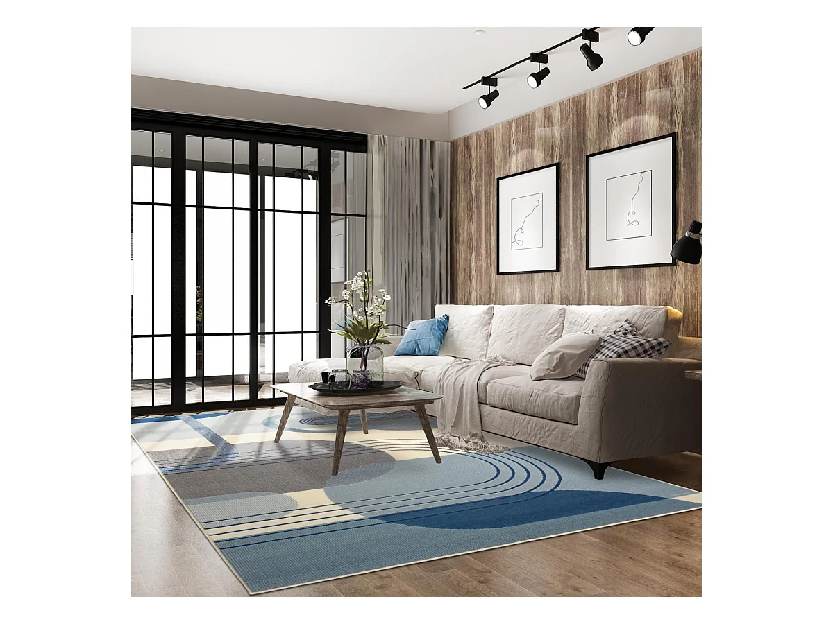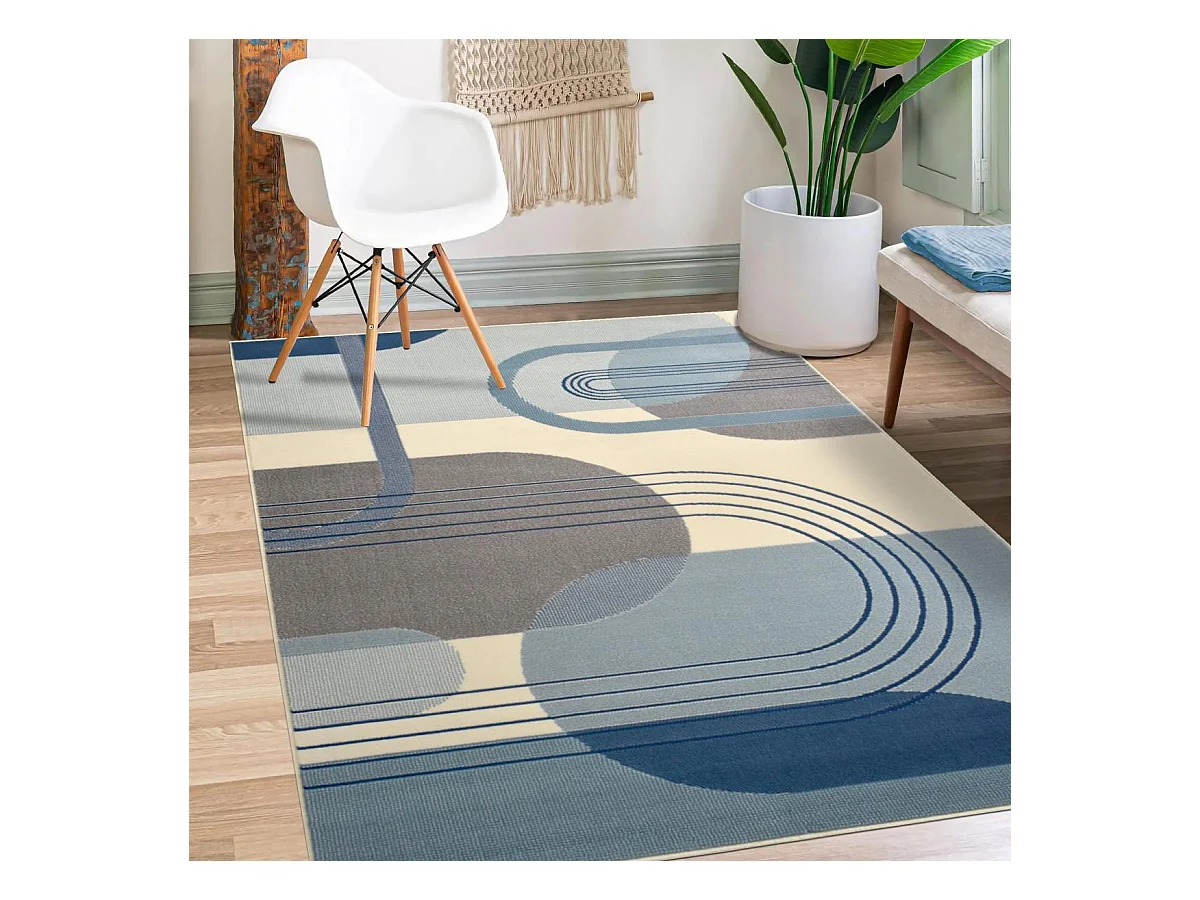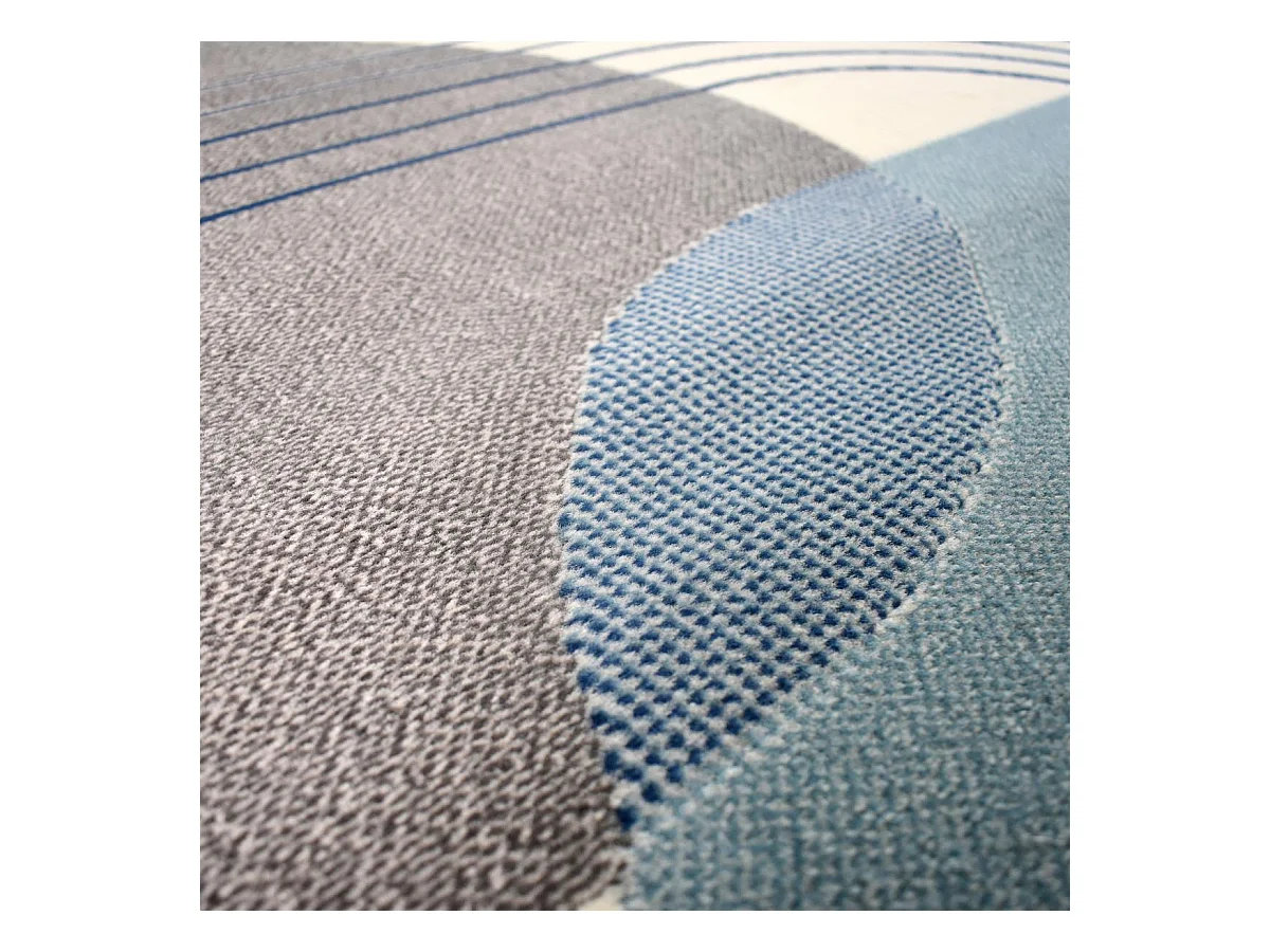 tapis chambre 80x150 tissé bleu et gris rectangle Motif rond GARCA