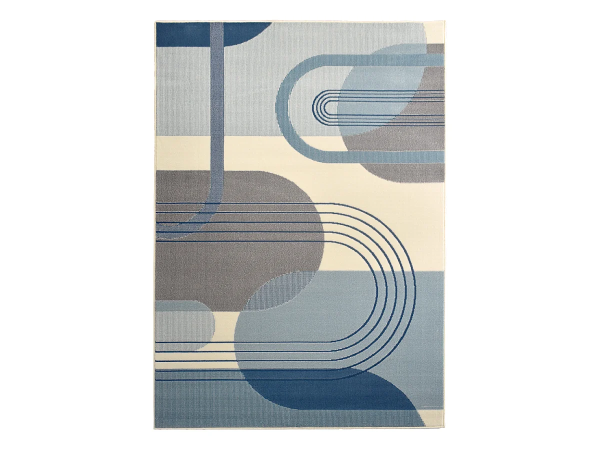 tapis chambre 80x150 tissé bleu rectangle motif géométrique ABSTRATA