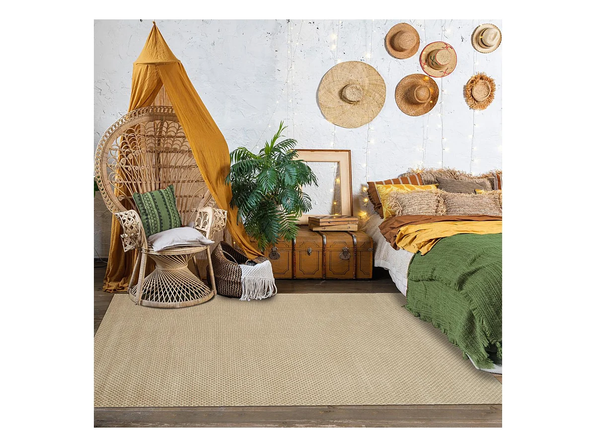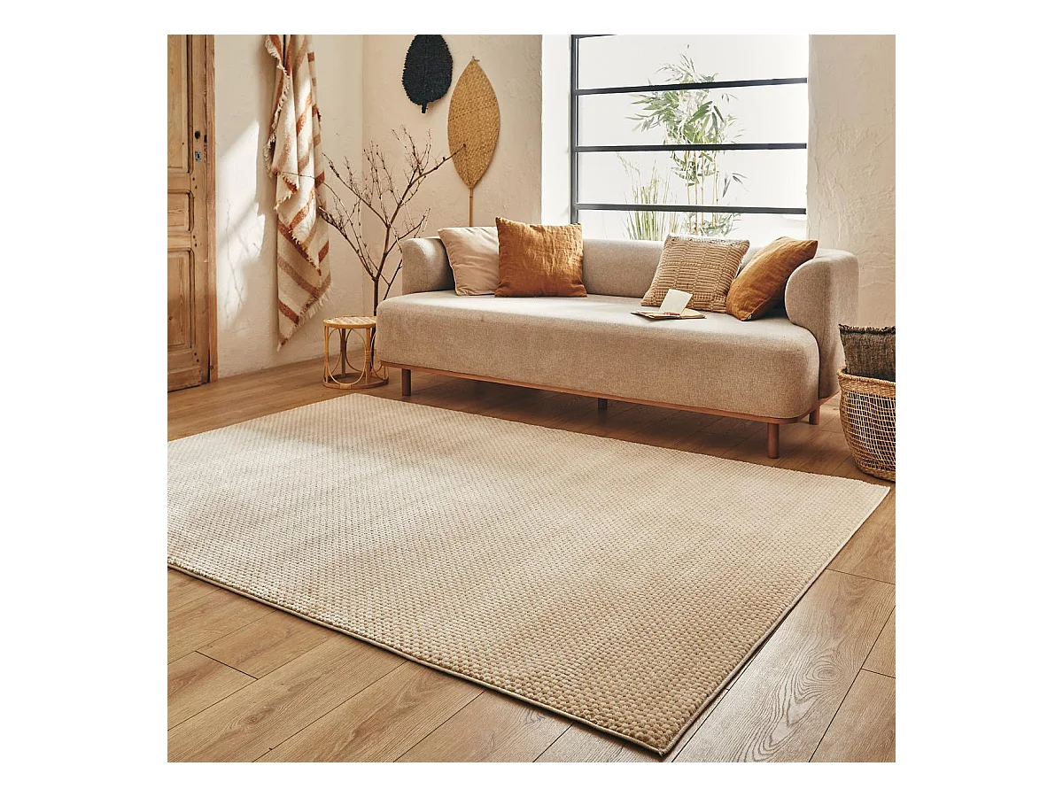 tapis entrée 80x150 tissé beige rectangle motif faux uni KOULA