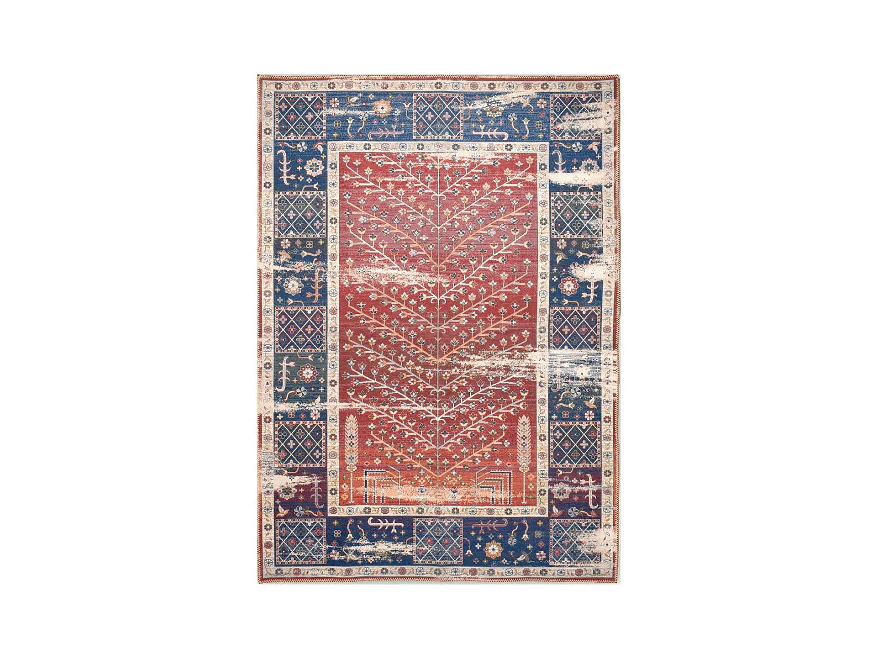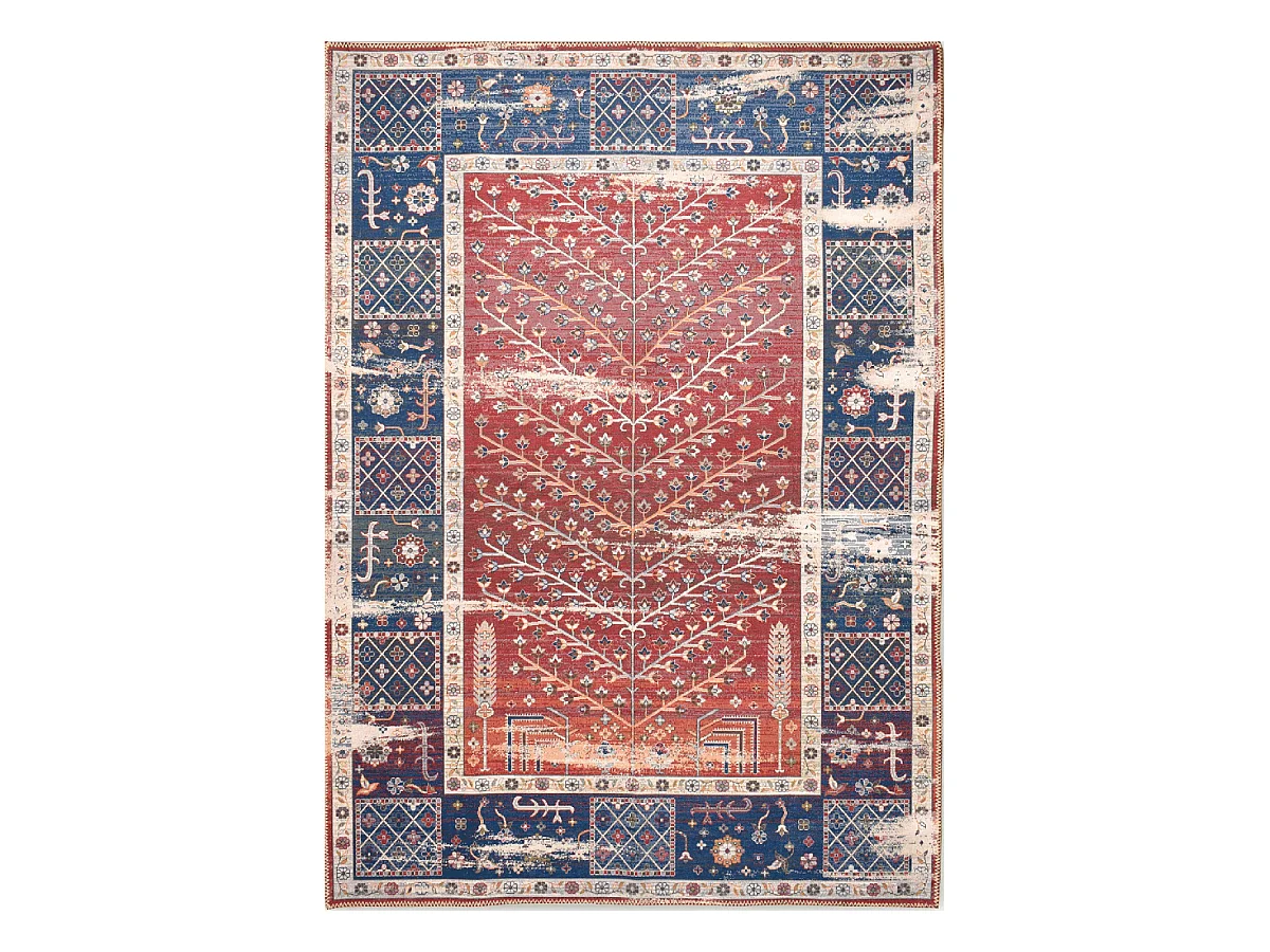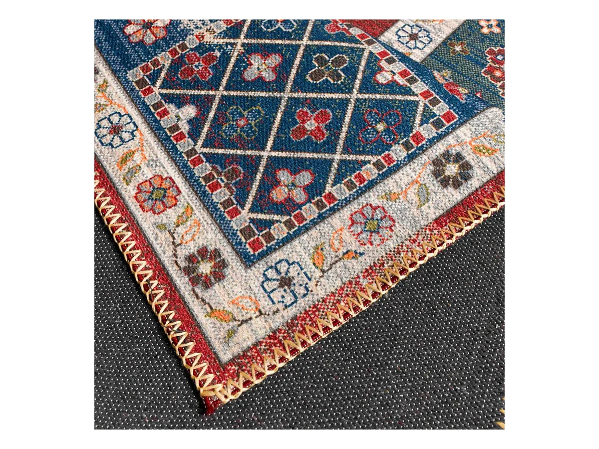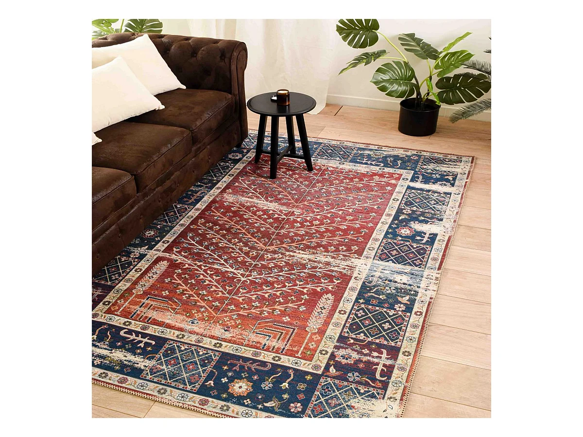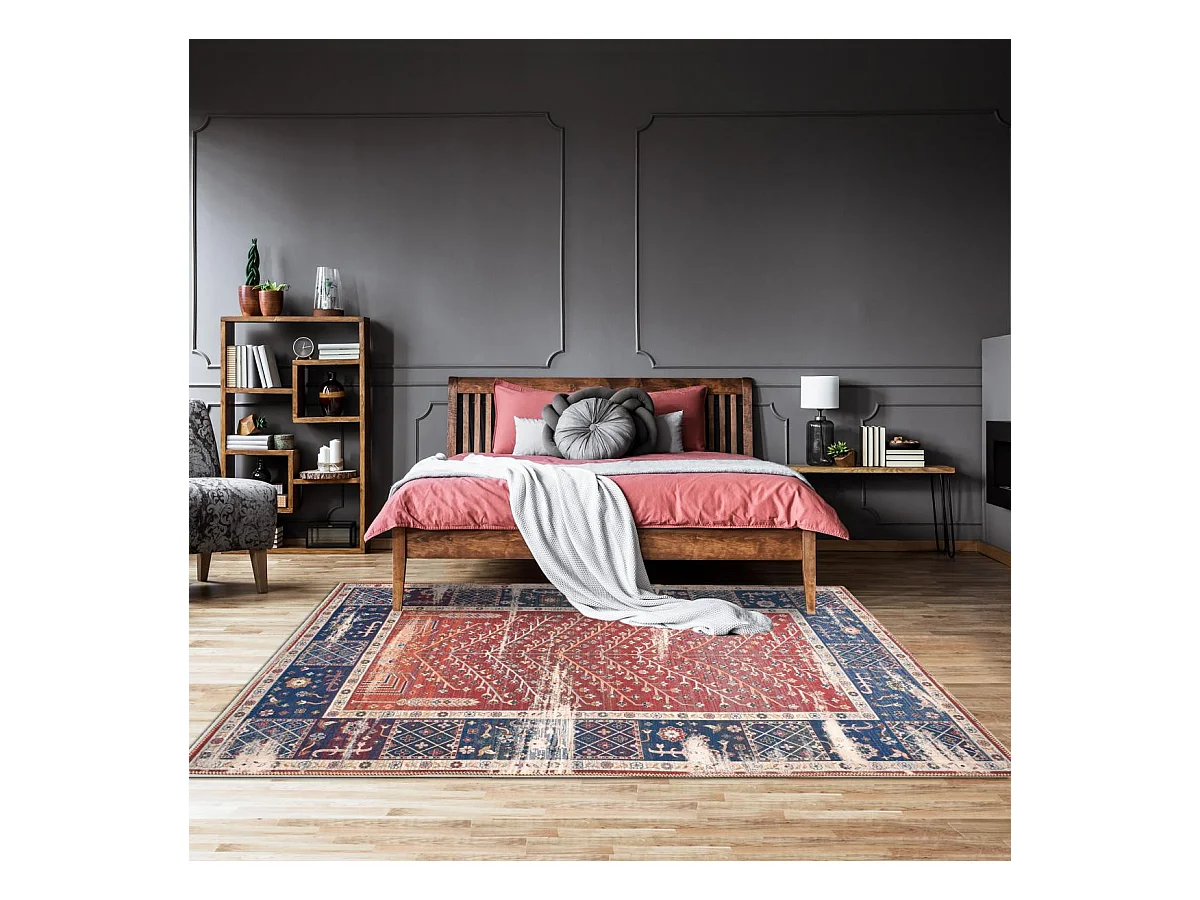tapis chambre 80x150 tissé rouge et bleu rectangle motif baroque SPENO 2