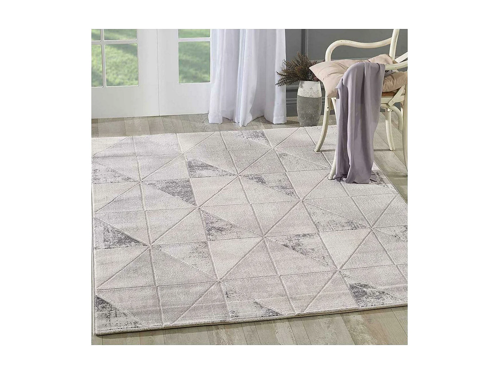 tapis de couloir 80x300 tissé gris clair rectangle motif géométrique LYN7 BERIM