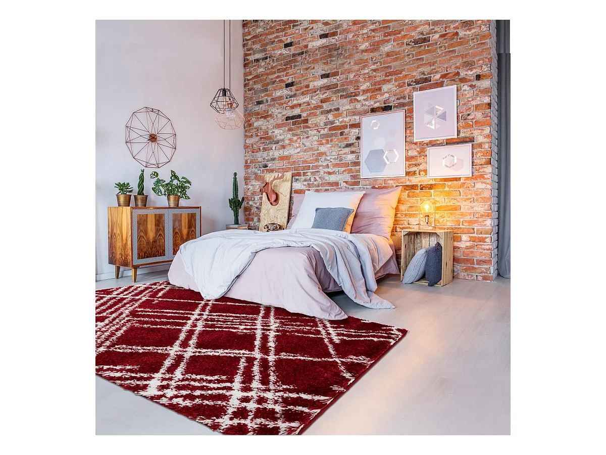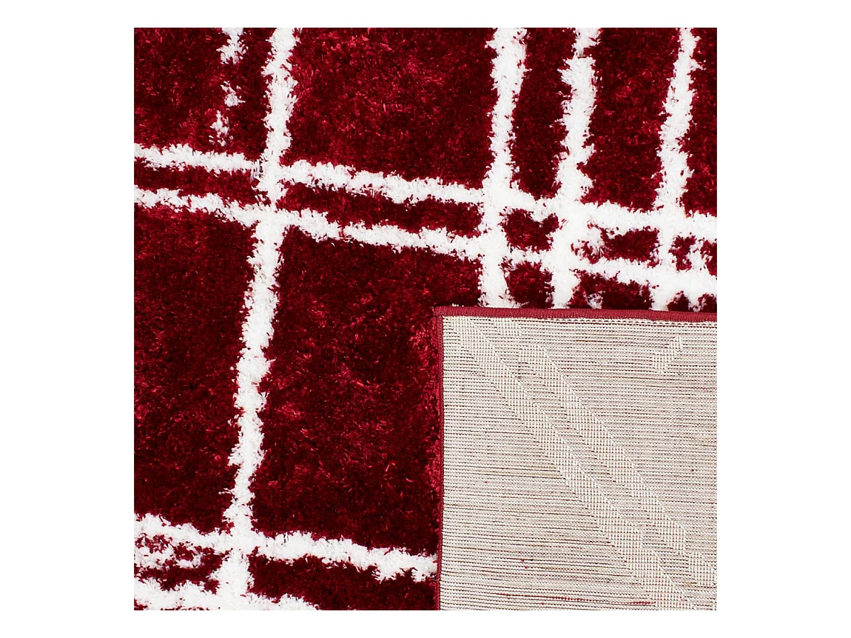 Tapis shaggy 80x300 rectangle tissé rouge et blanc motif faux uni EMBER