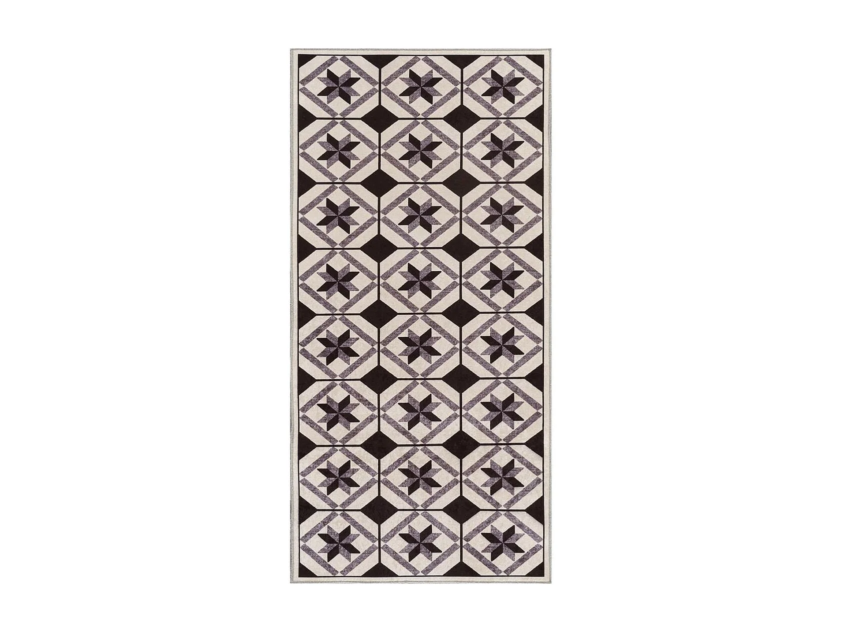 Tapis couloir 80x300 Noir motif carreaux de ciment N & B