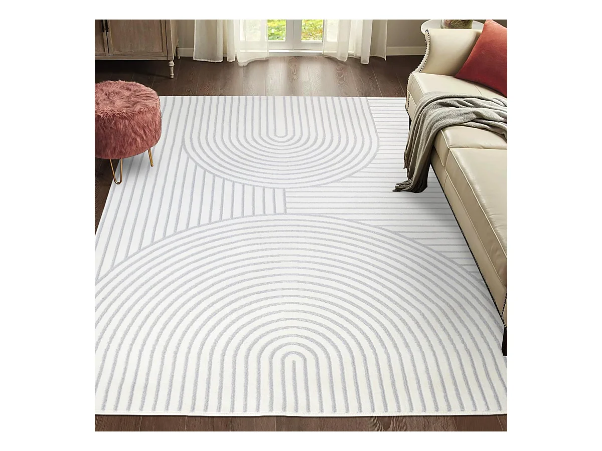 tapis salon 120x170 tissé blanc cassé rectangle motif abstrait LYN1 MALMO