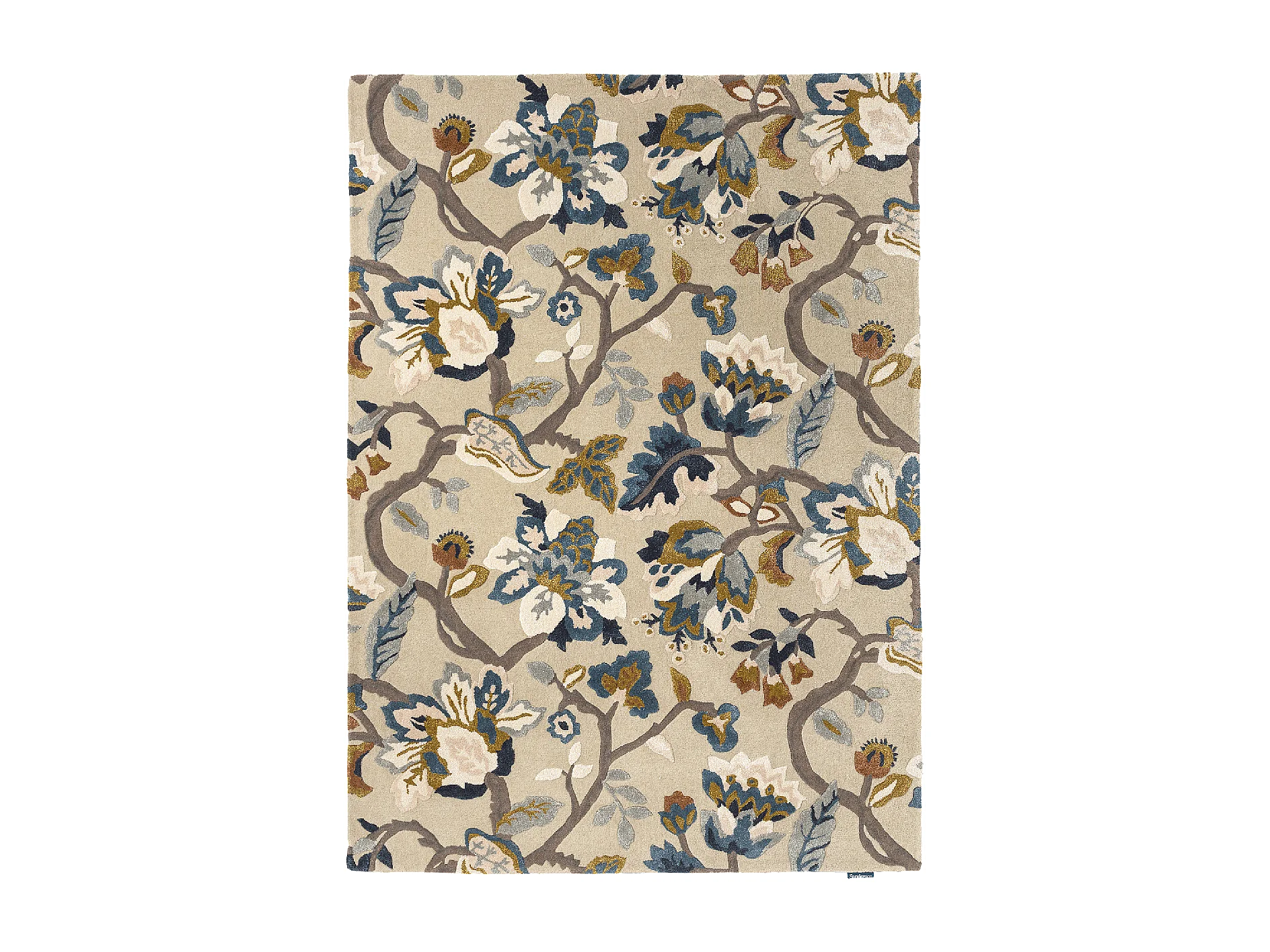 tapis salon 200x280 fait à la main en laine beige et bleu motif floral