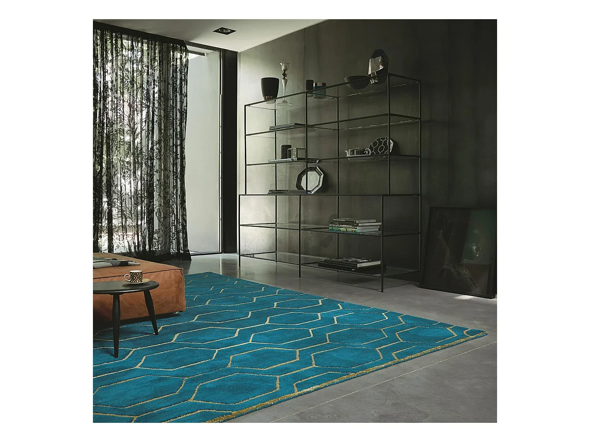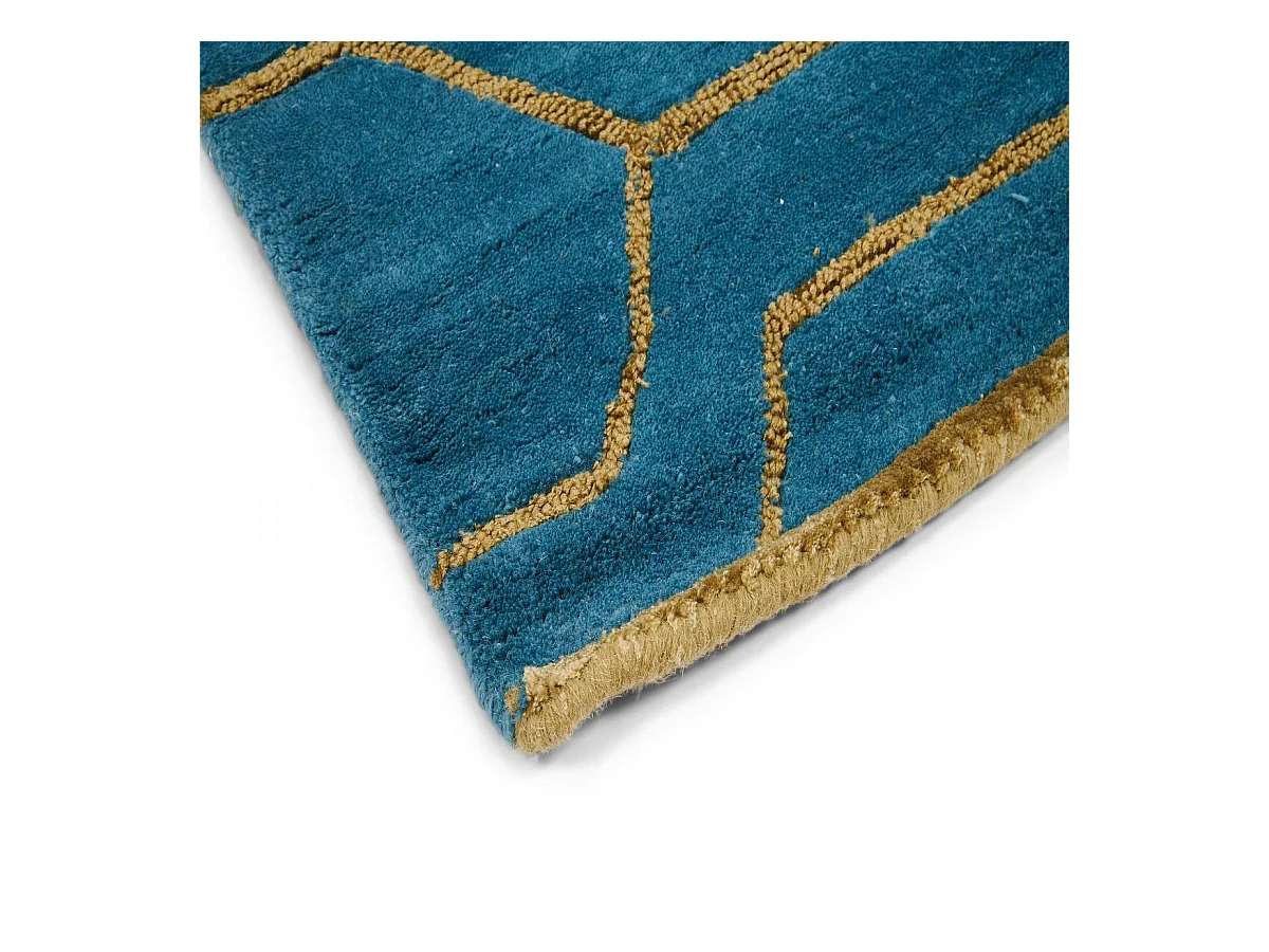tapis chambre 120x180 fait à la main en laine bleu rectangle motif scandinave