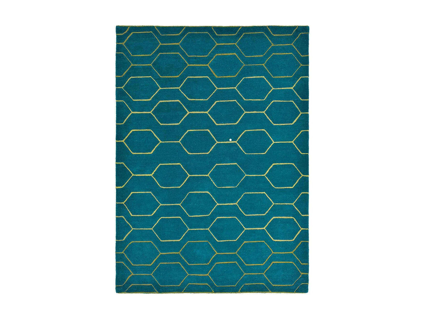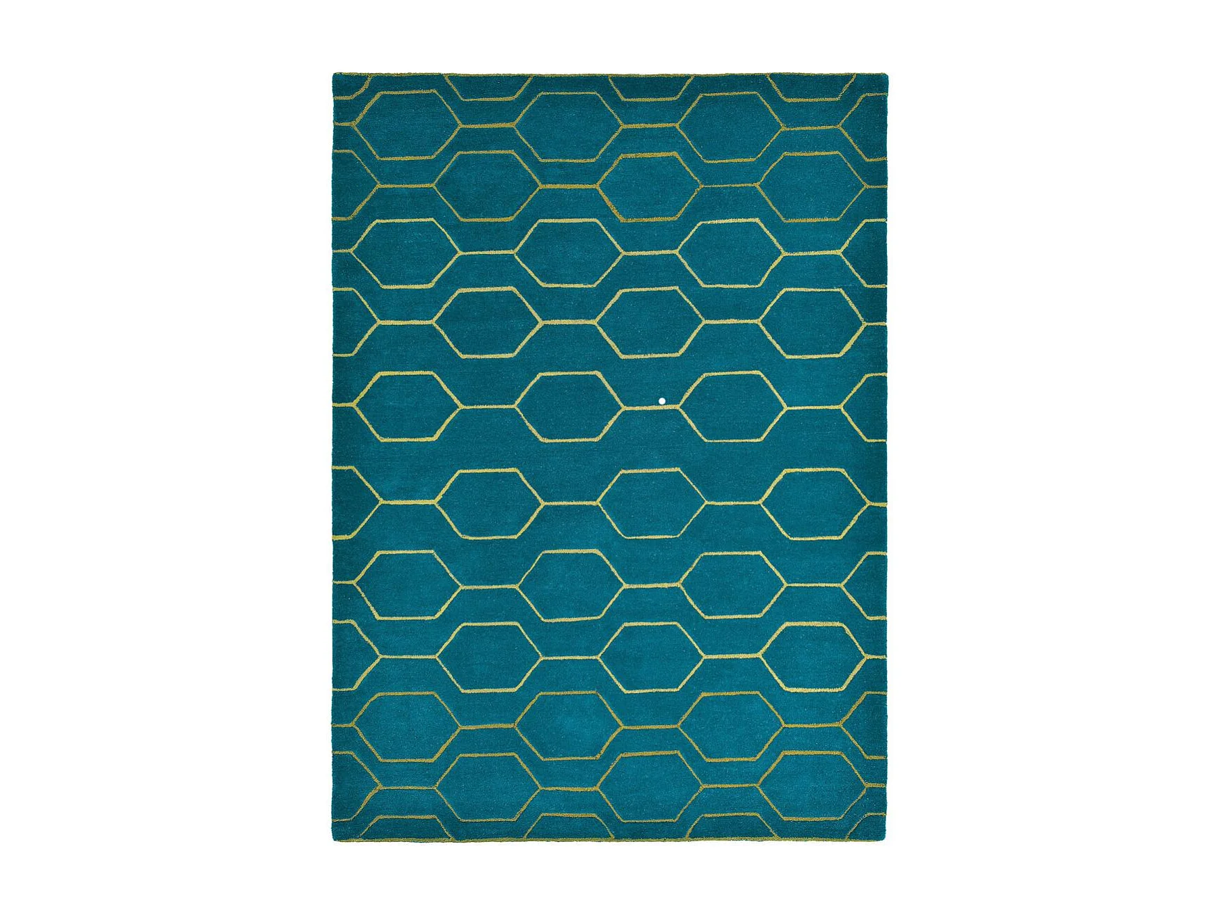 tapis salle à manger 250x350 fait à la main en laine bleu motif scandinave