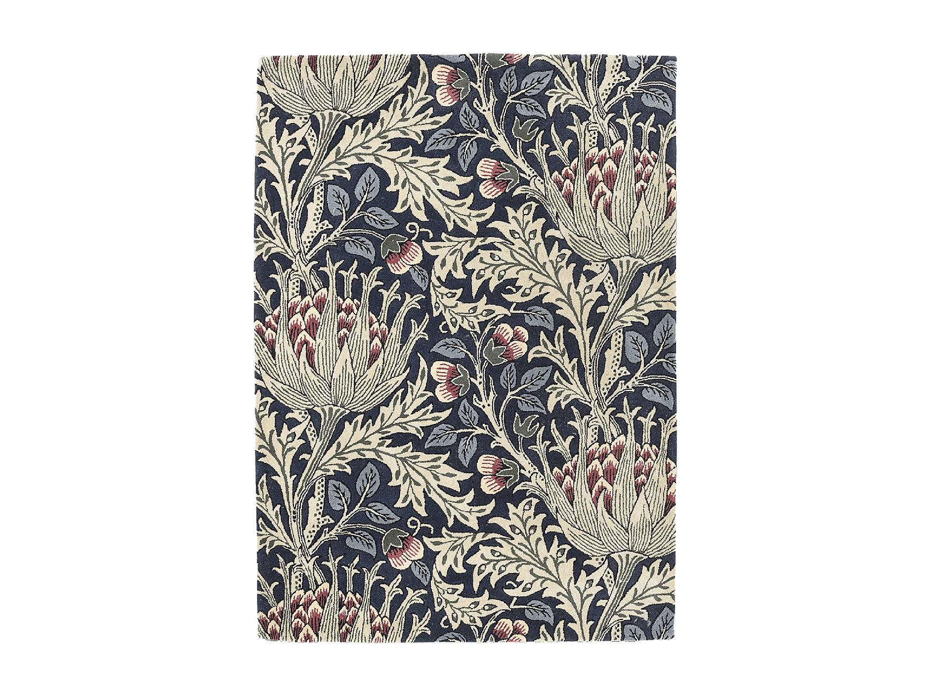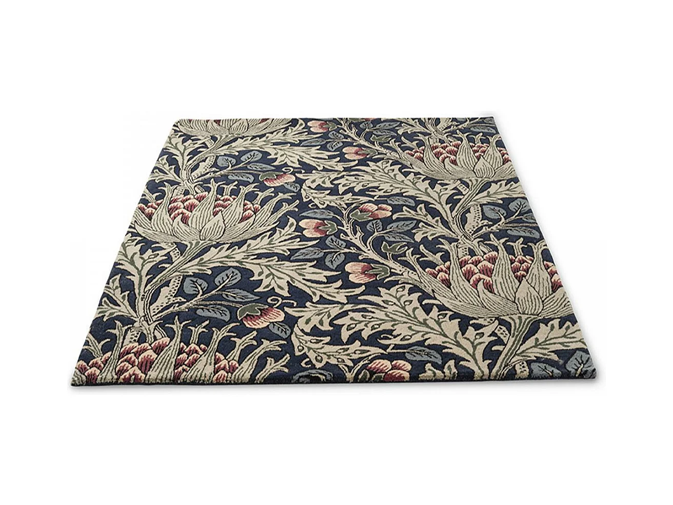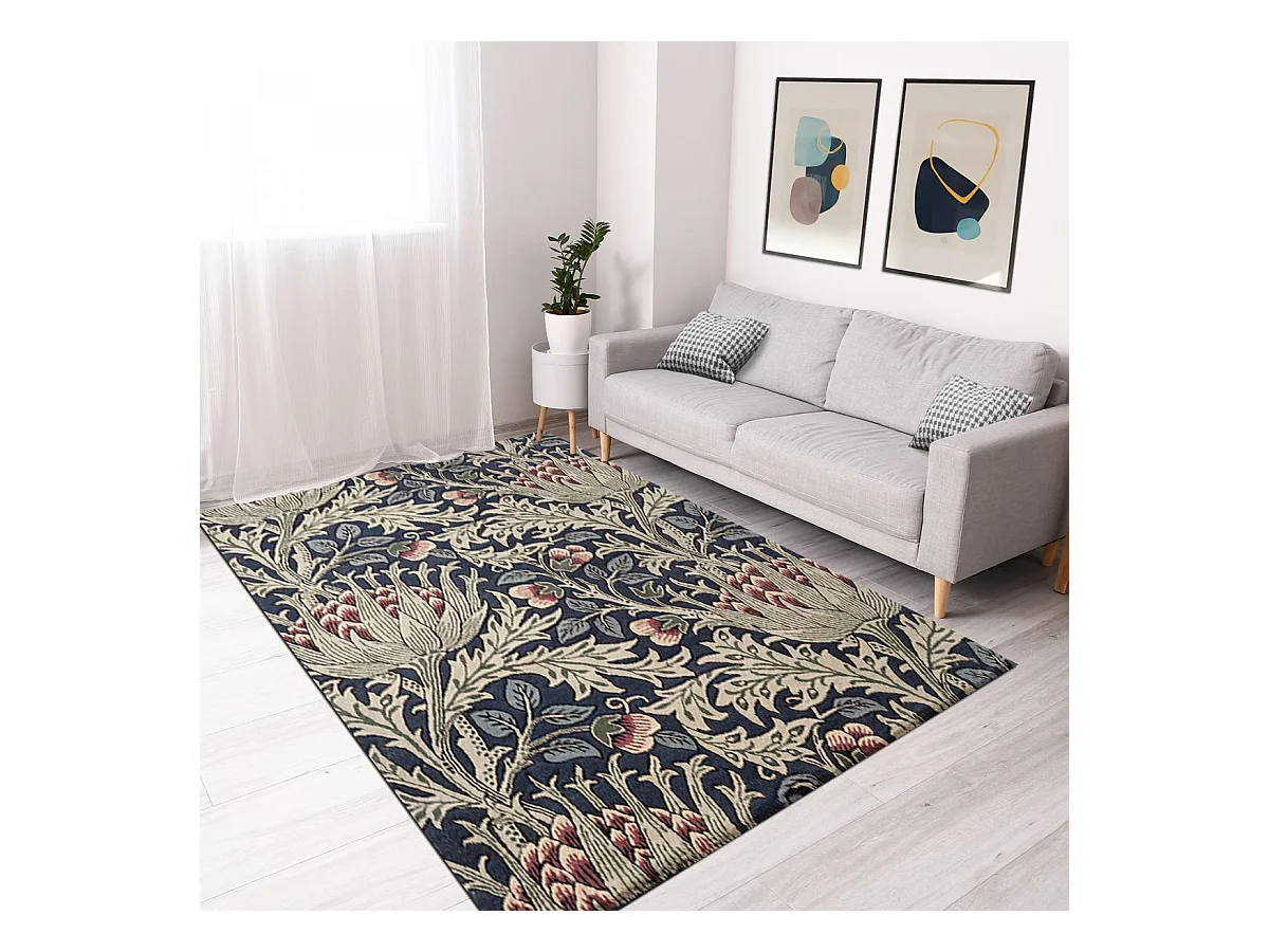 tapis chambre 170x240 fait à la main en laine bleu et vert motif floral
