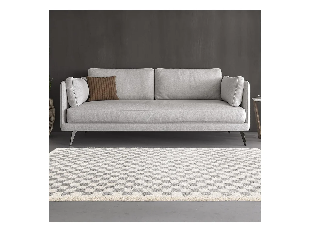 Tapis shaggy 200x290 rectangle tissé gris et beige motif géométrique AVANTE