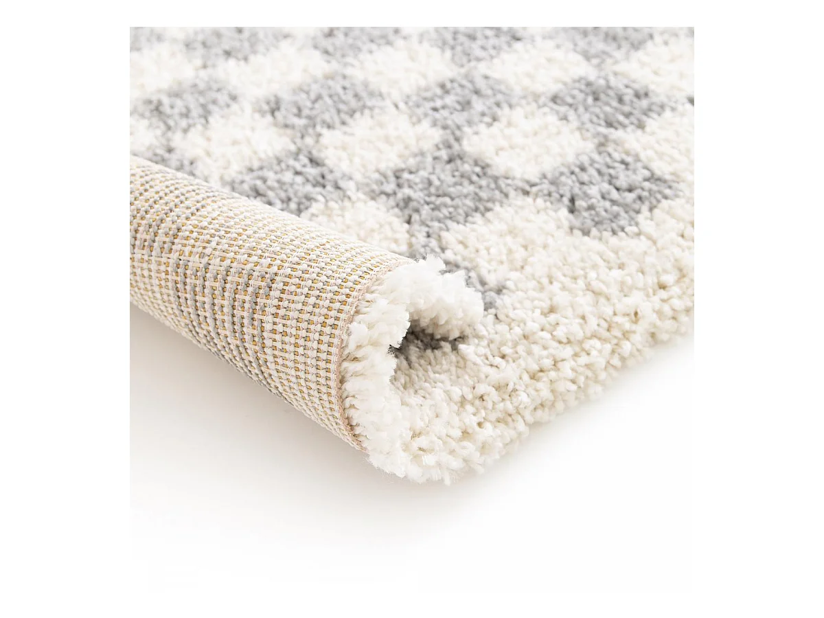 Tapis shaggy 160x230 rectangle tissé gris et crème motif berbère CHROMA 3