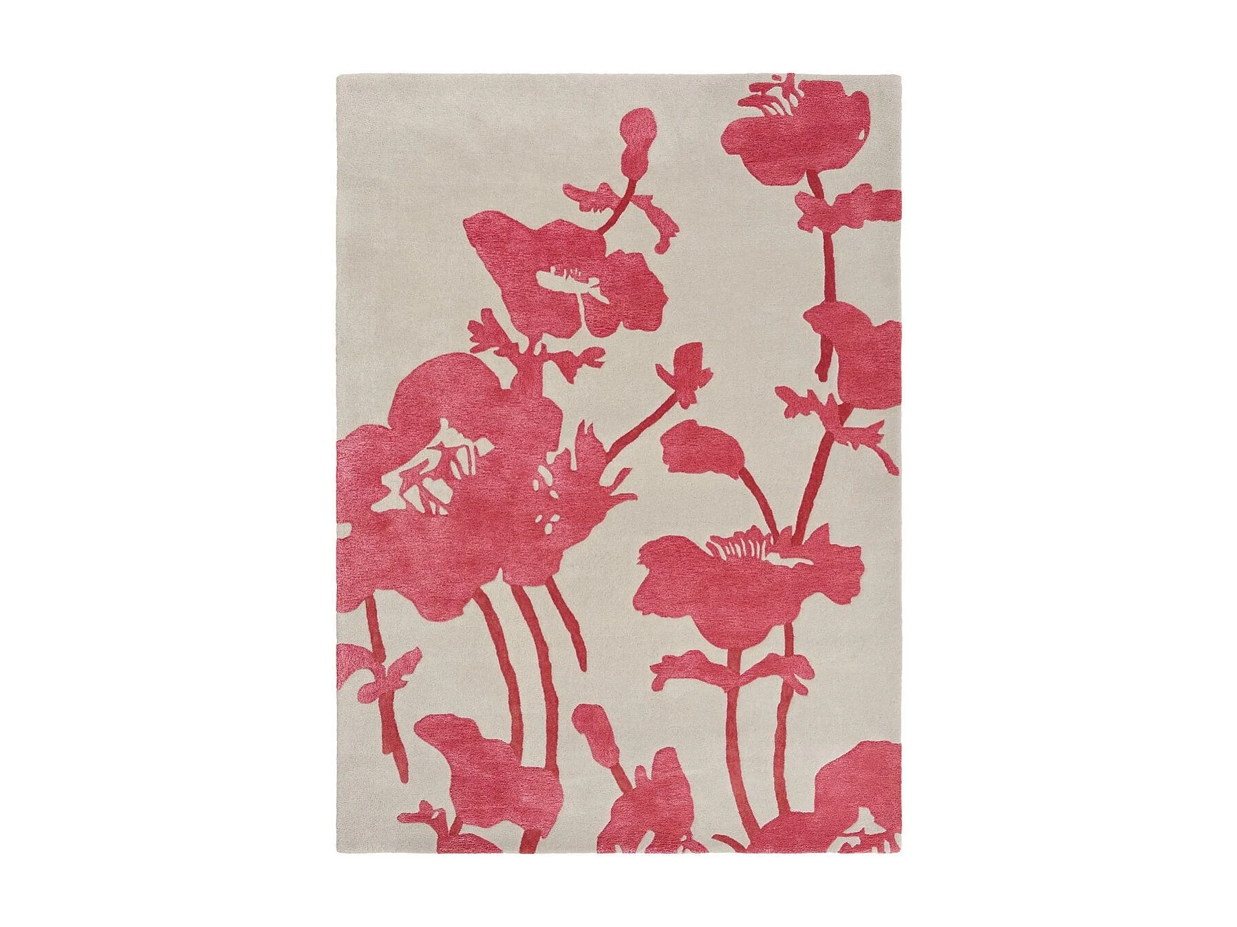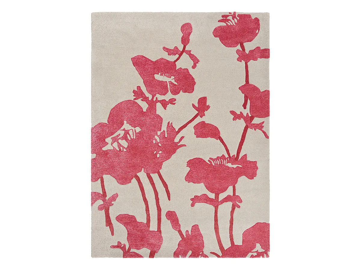 tapis chambre 170x240 fait à la main en laine gris et rouge motif floral