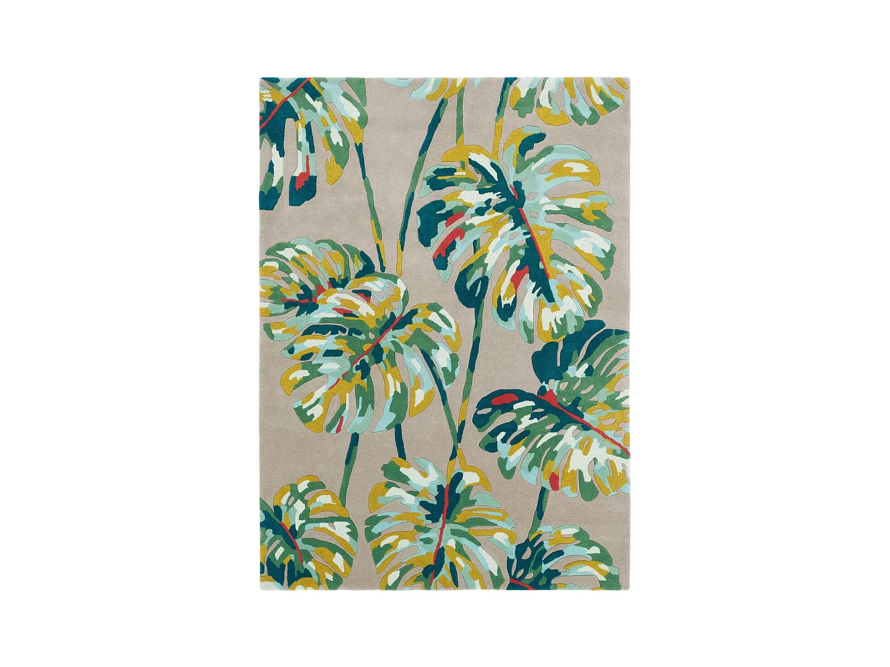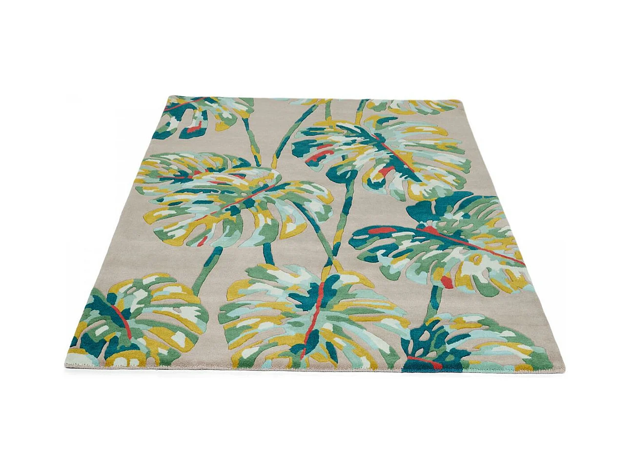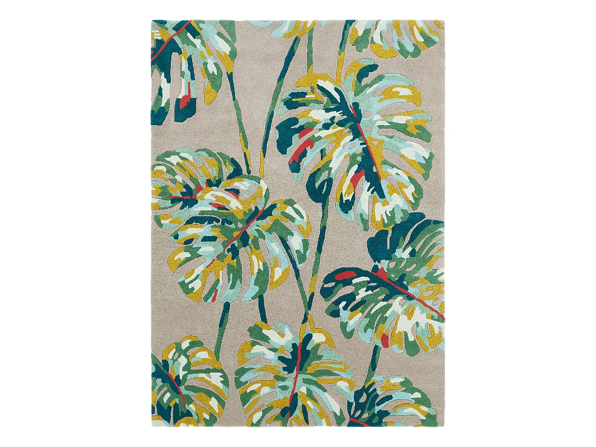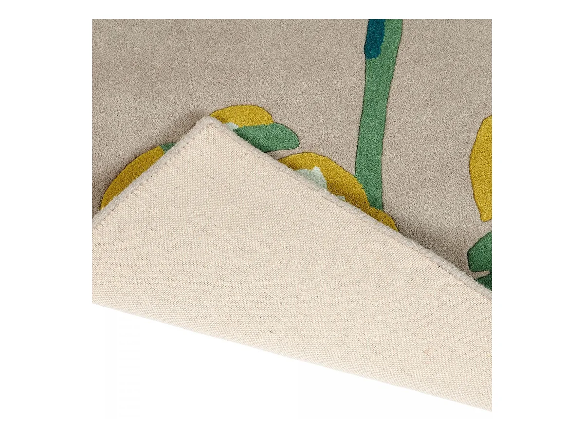 tapis grand salon 250x350 fait à la main en laine gris et vert motif floral