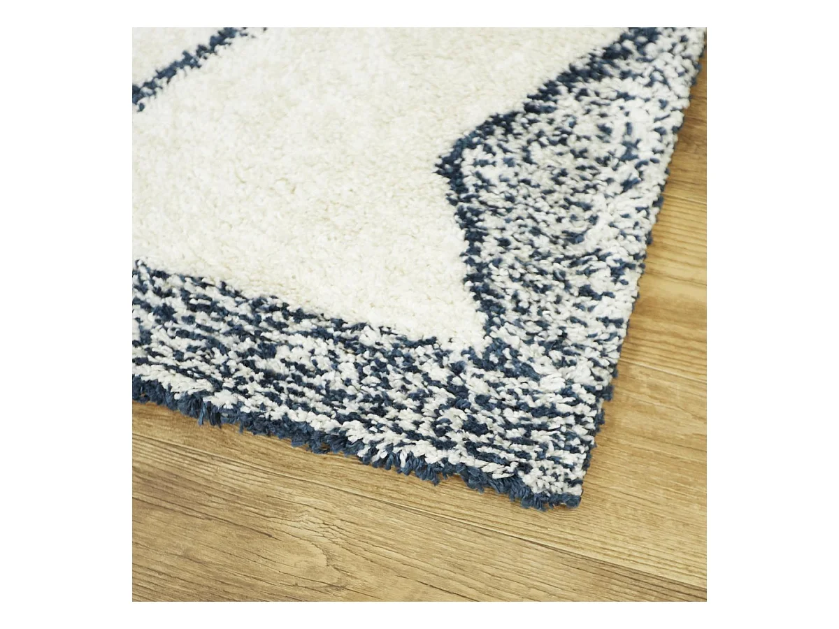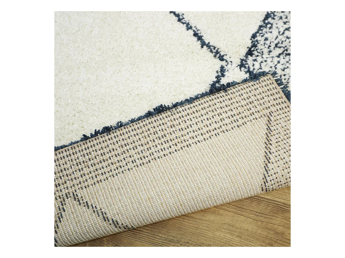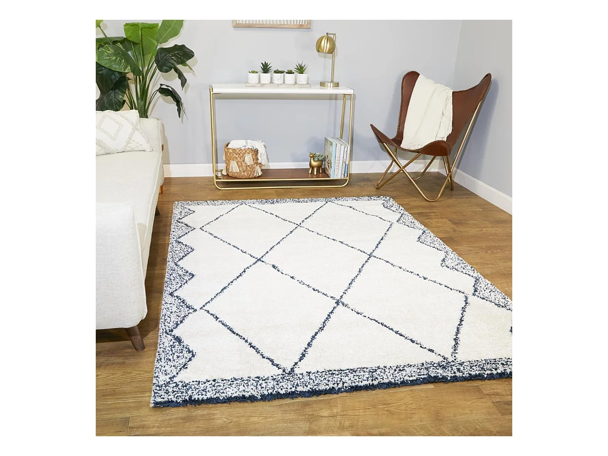 tapis salon 160x213 tissé blanc et bleu rectangle motif berbère CALYPSO 1