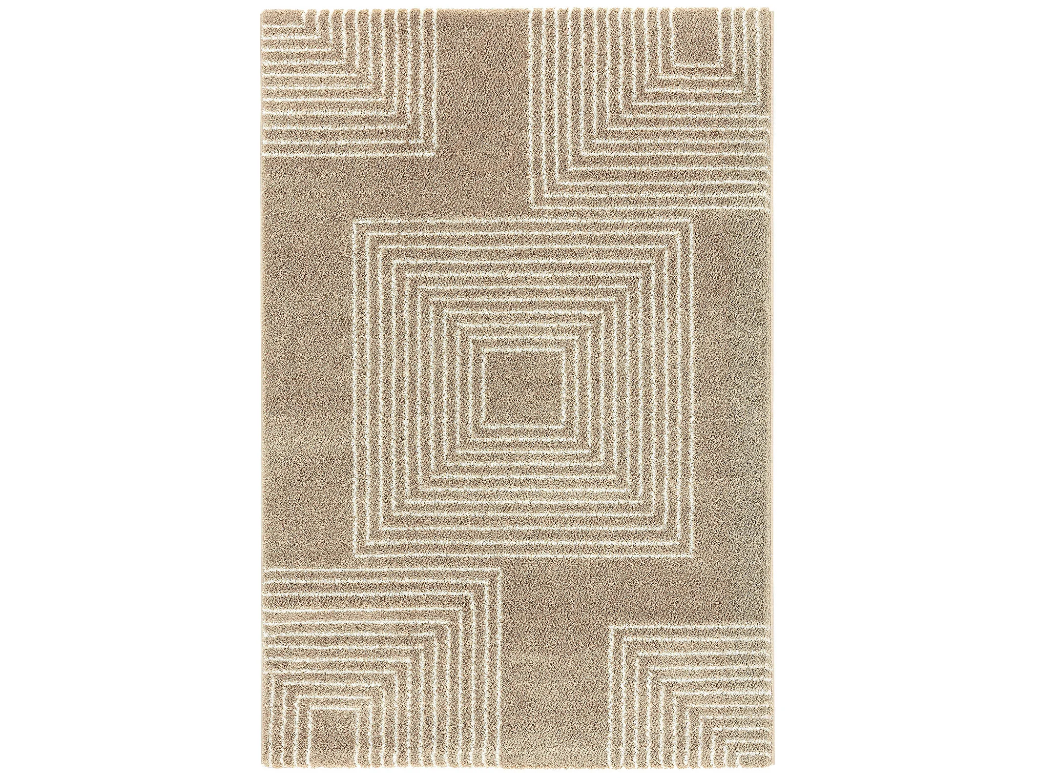 Tapis Salon, Chambre Beige À Poils Longs Doux Motifs Géométrique 100x150 Cm