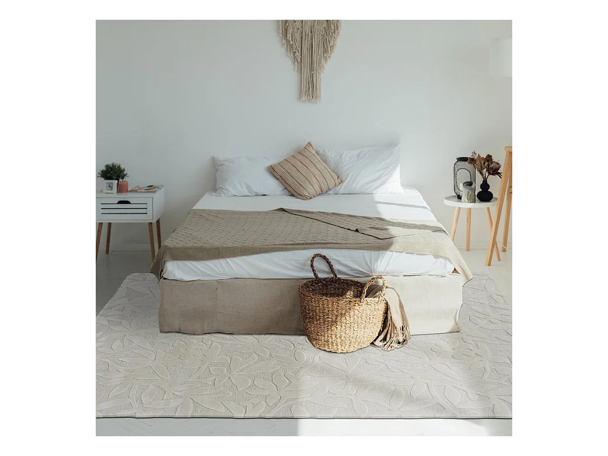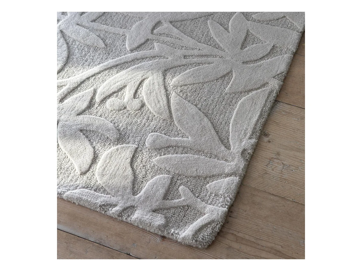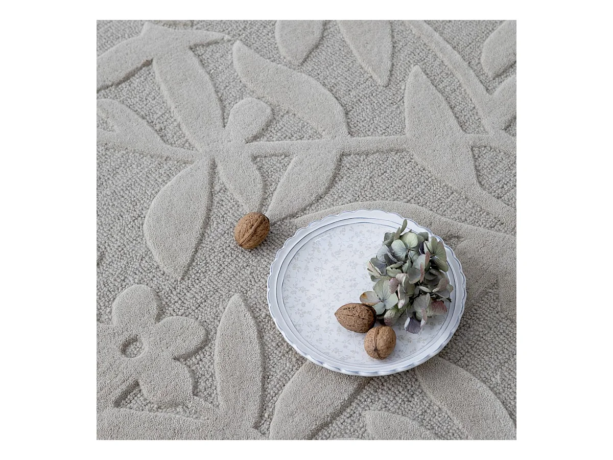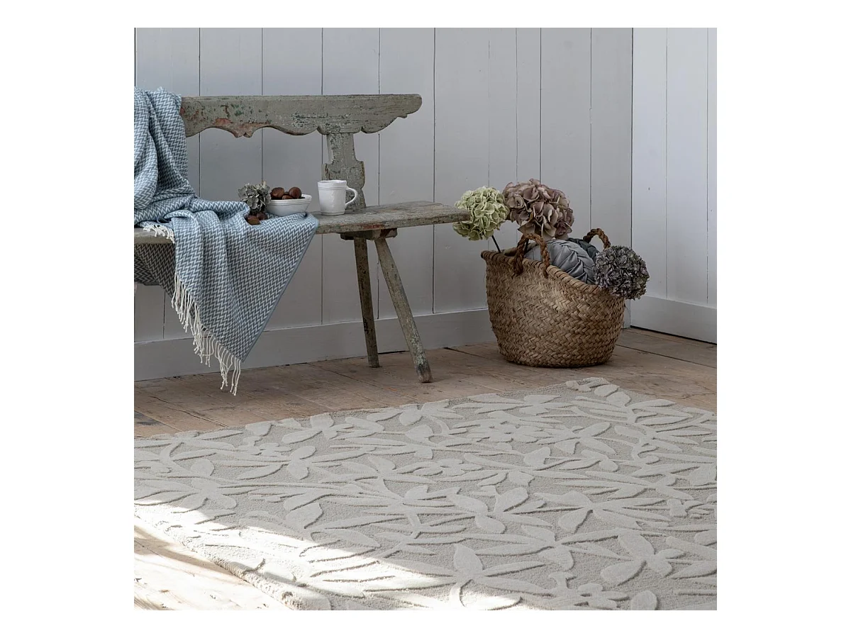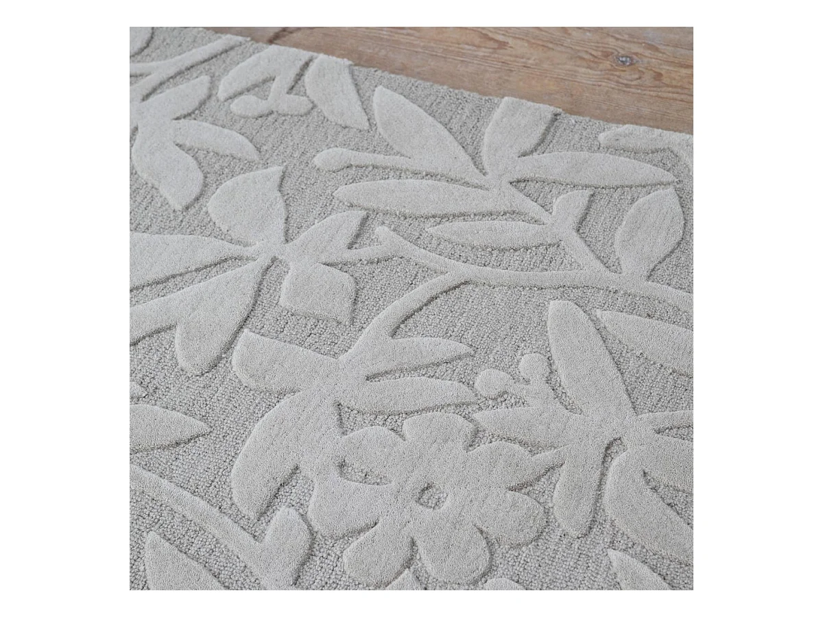 tapis salon 170x240 fait main en laine gris rectangle motif floral CLEAVERS