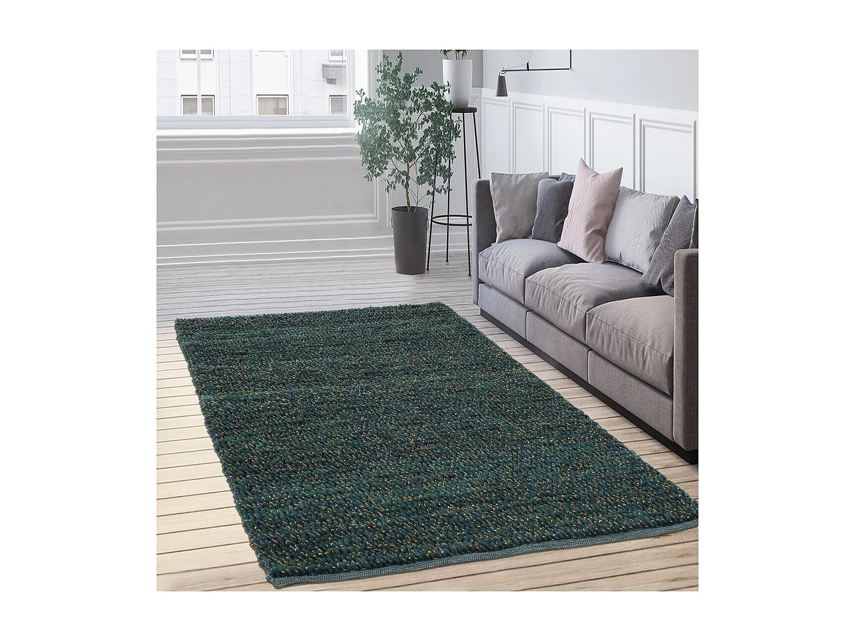 tapis entrée 140x200 tissé en laine vert rectangle motif uni COBLE