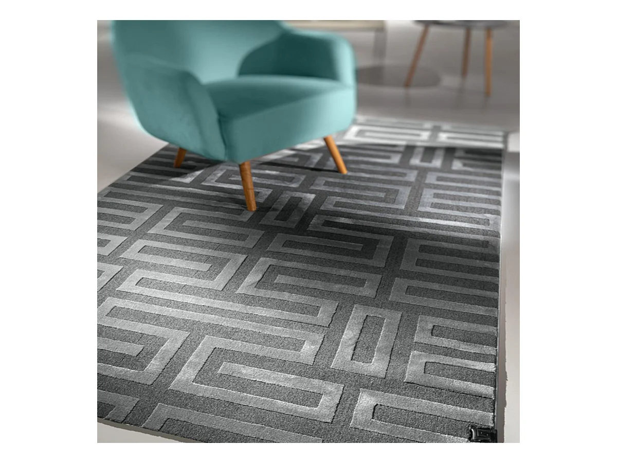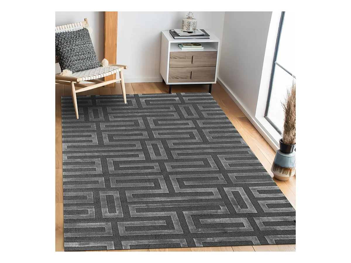 tapis chambre 160x230 tissé gris rectangle motif géométrique CONRAD