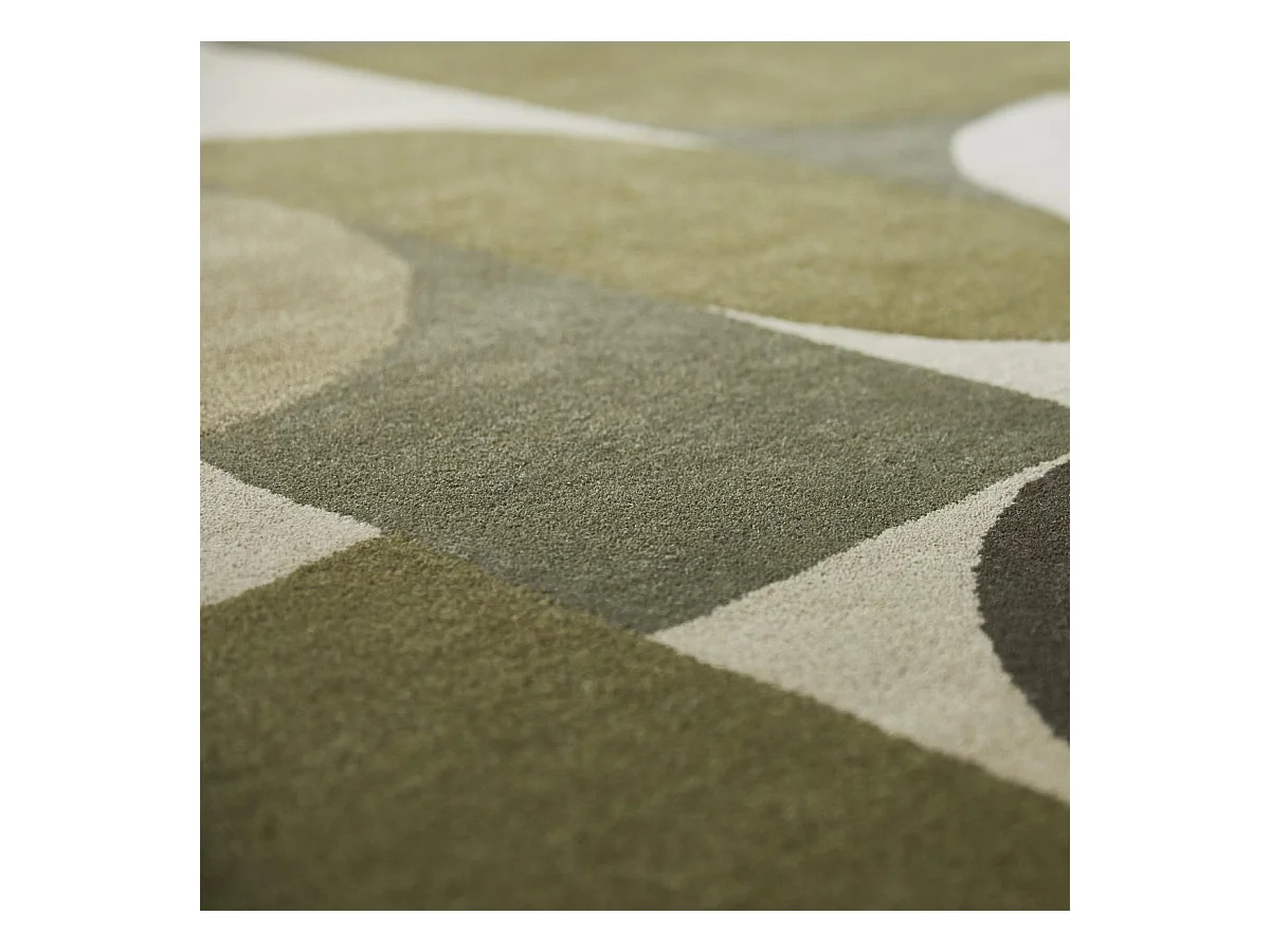 tapis chambre 140x200 fait à la main en laine vert et beige motif seventies
