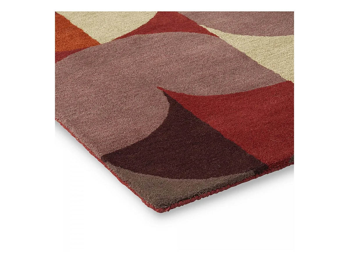 tapis chambre 160x230 fait à la main en laine rouge et orange motif seventies