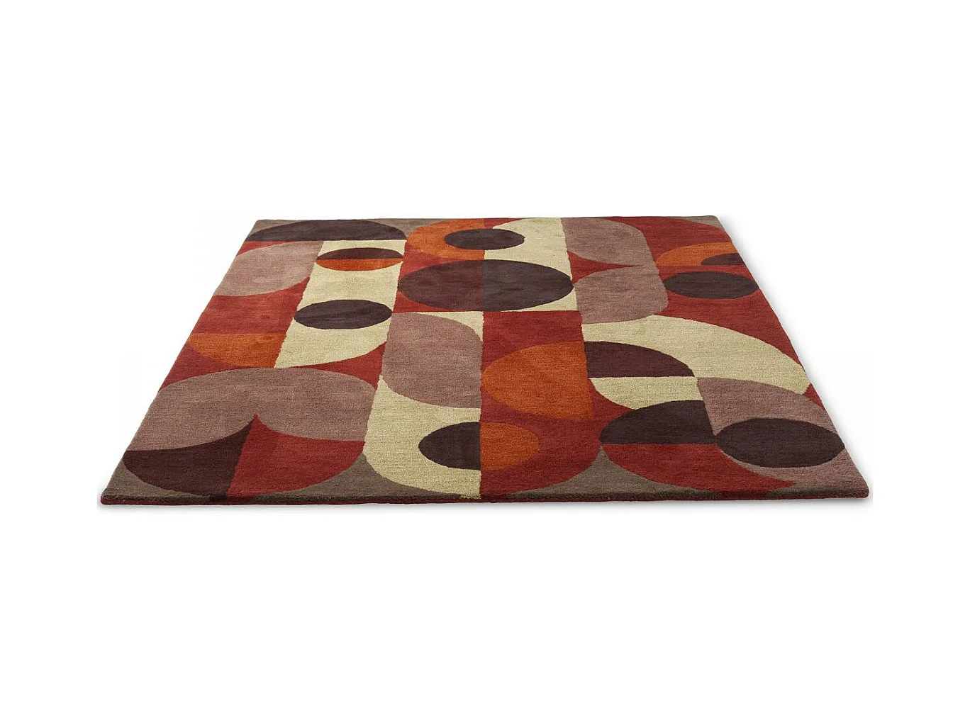 tapis grand salon 250x350 fait à la main en laine rouge et orange motif seventies