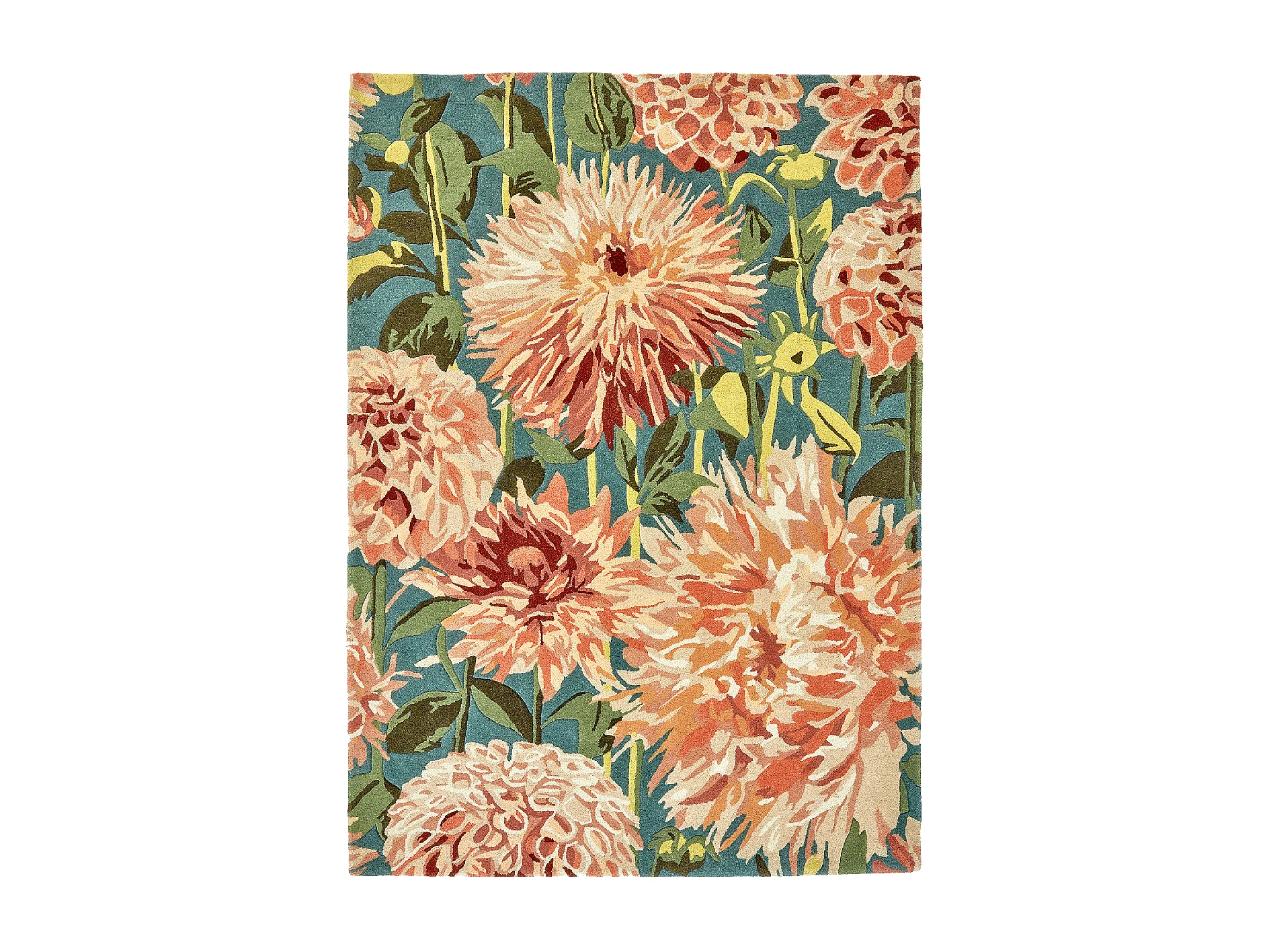 tapis chambre 170x240 fait à la main en laine vert et orange motif floral