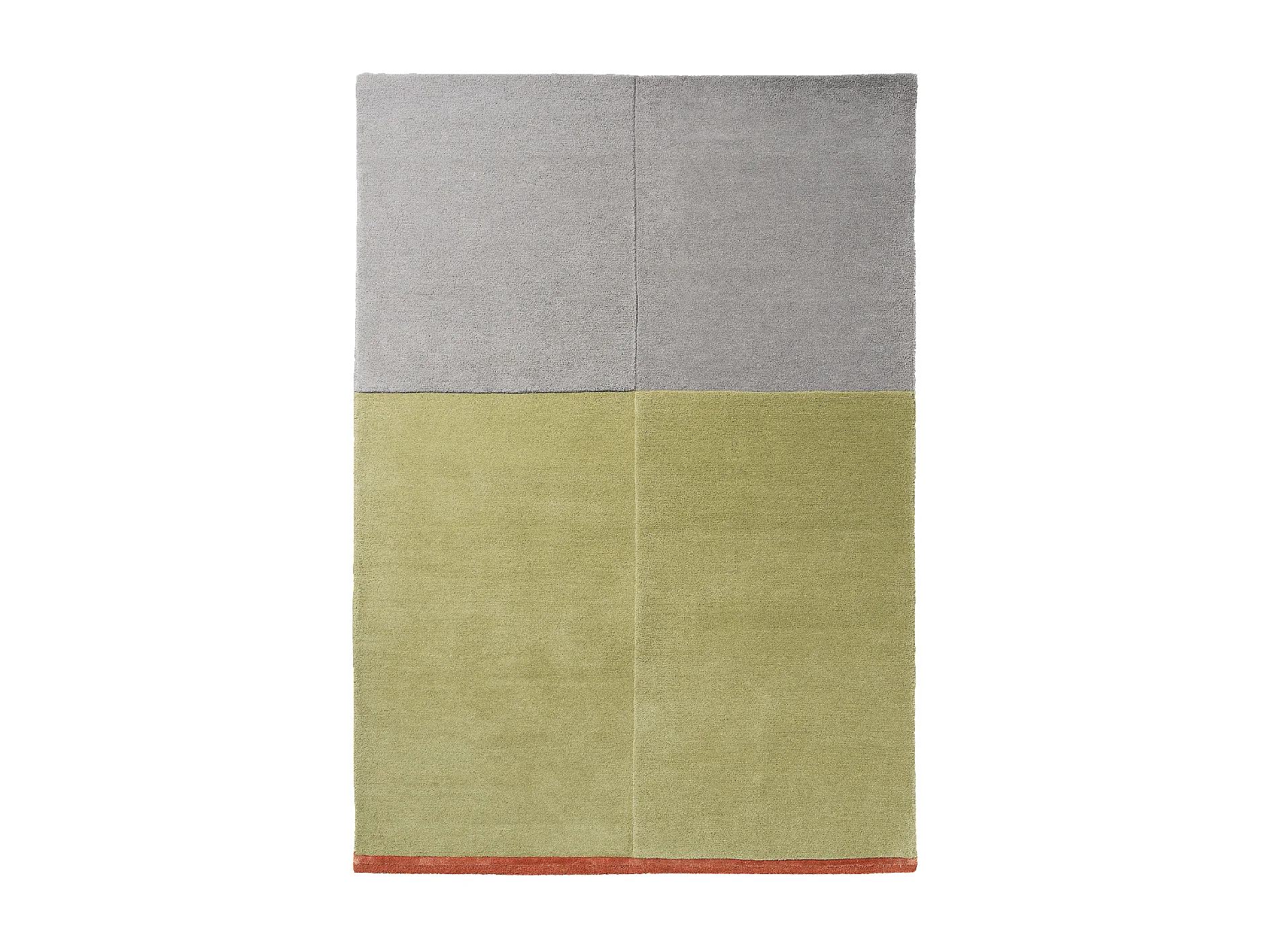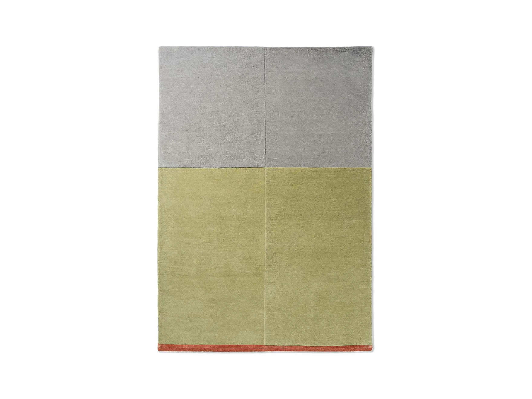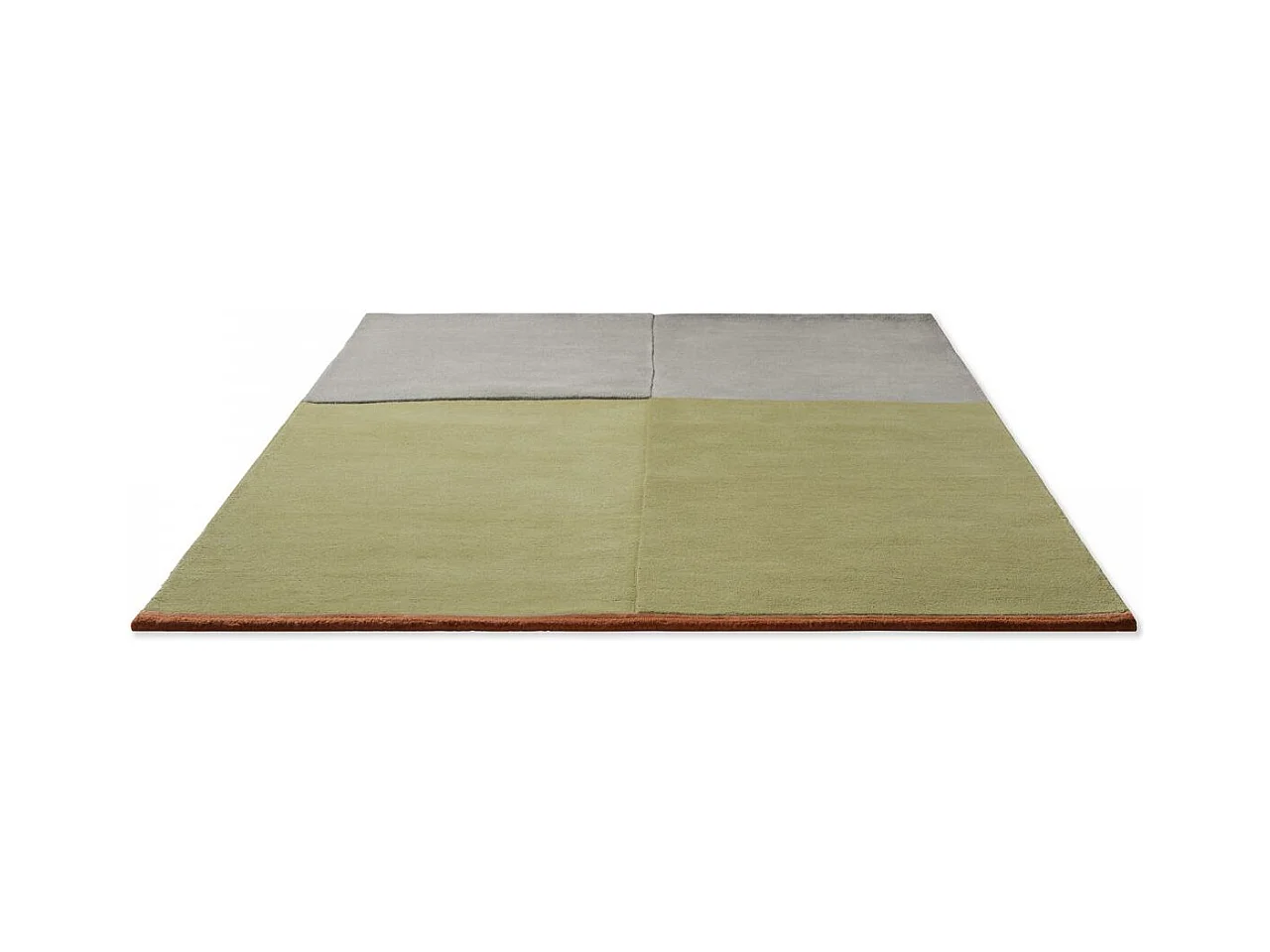 tapis bibliothèque 250x350 fait main en laine vert et gris motif simple