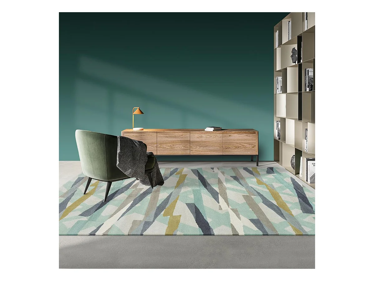 tapis grand salon 250x350 fait à la main en laine gris et vert