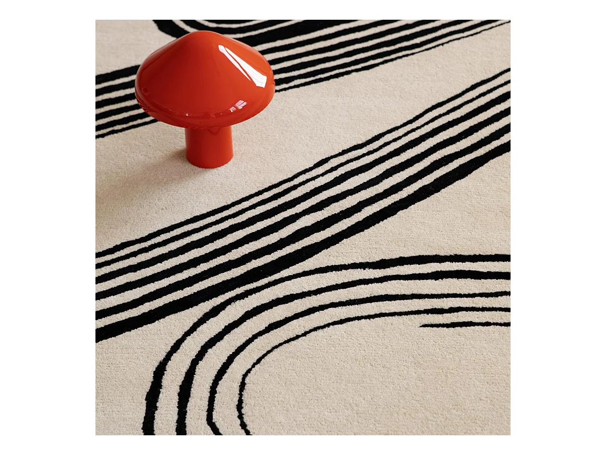 tapis open space 200x280 fait main en laine crème et noir motif géométrique