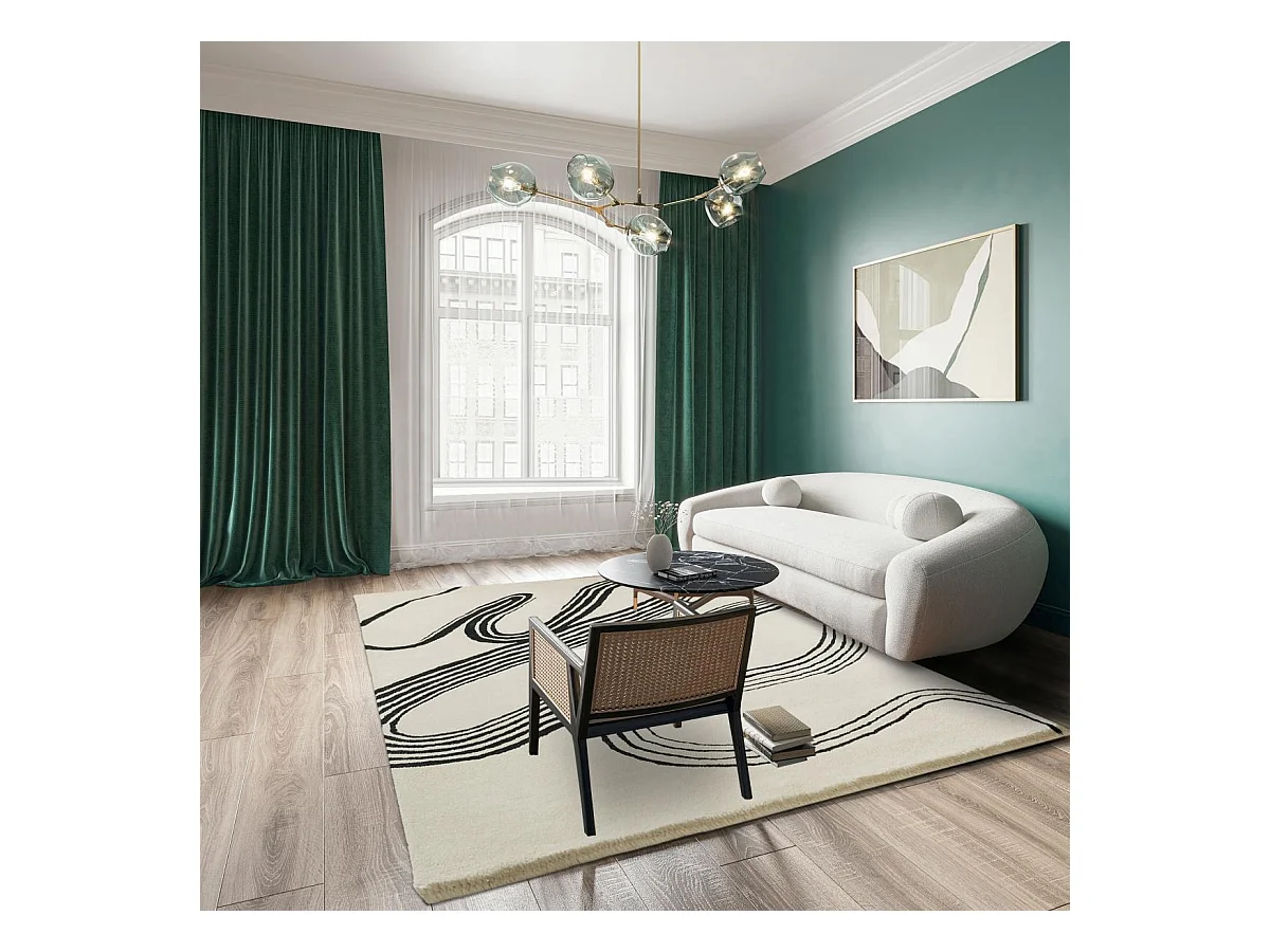 tapis grand salon 250x350 fait main en laine crème et noir motif géométrique