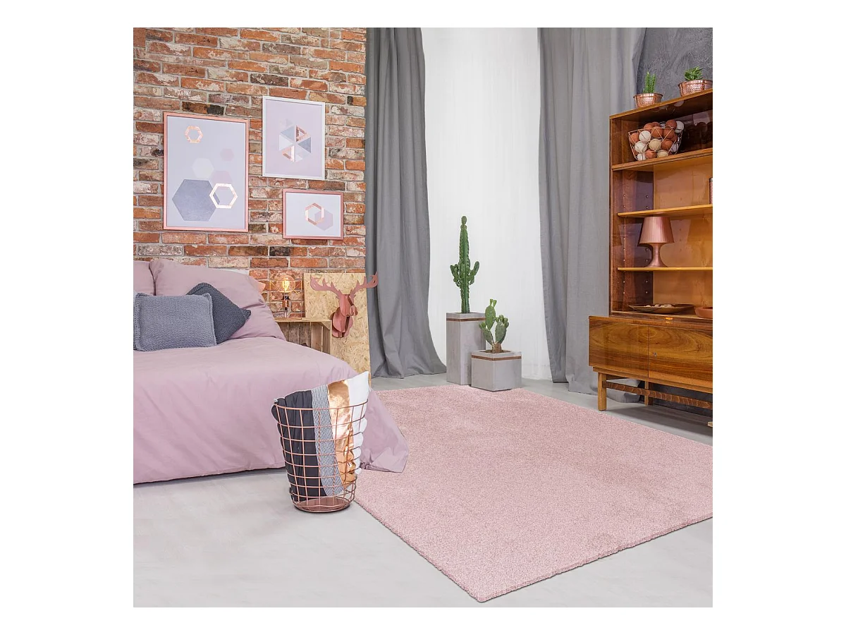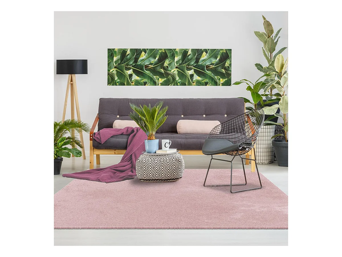 tapis grand salon 160x230 tissé rose rectangle motif uni DELIGHTA