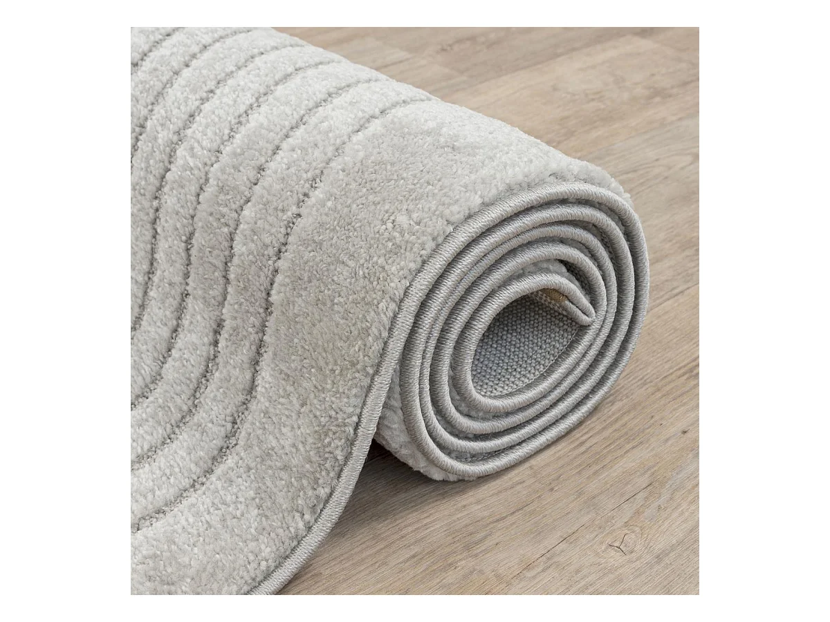tapis chambre 60x110 tissé gris rectangle motif géométrique LYN1 VAGUES