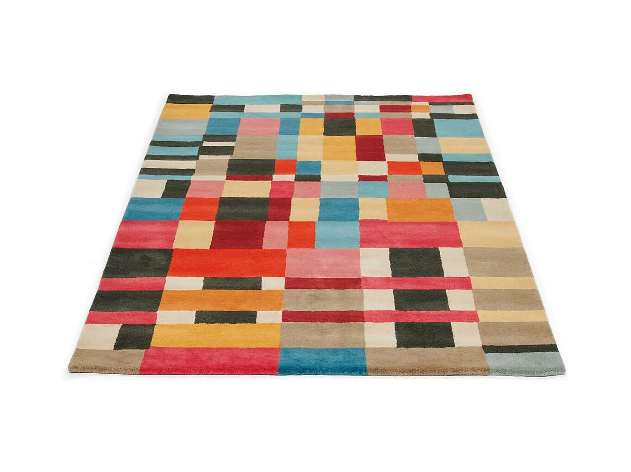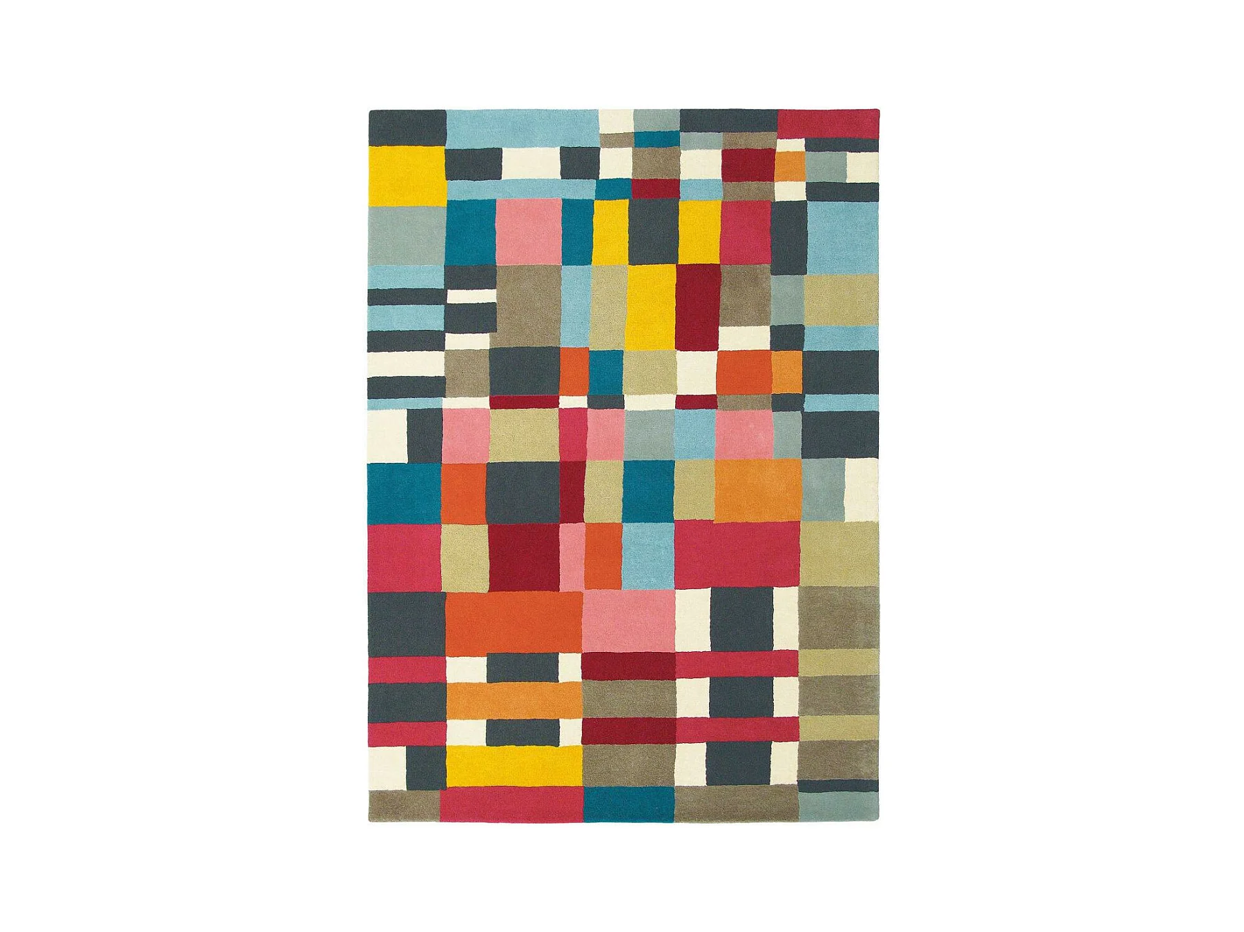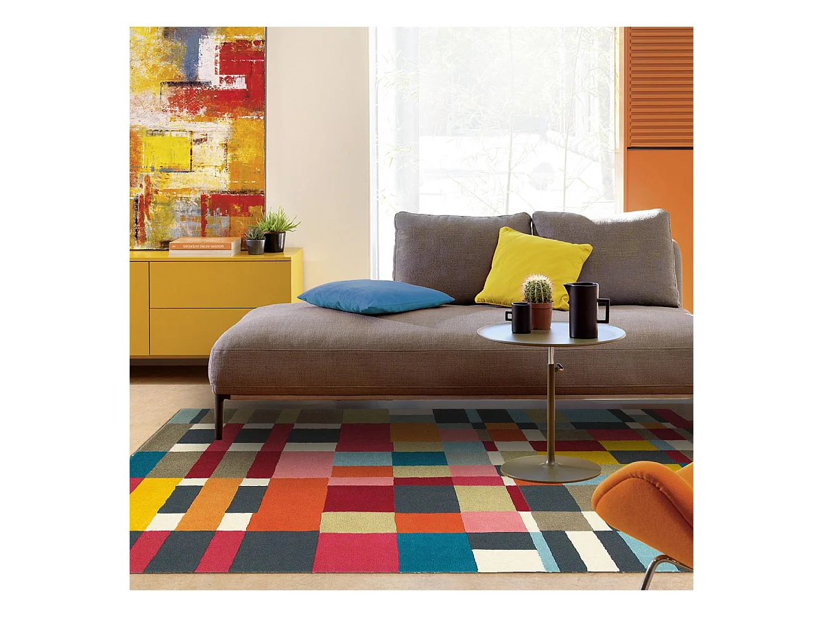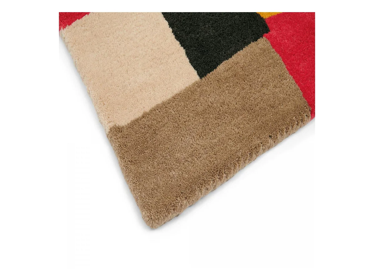 tapis salon 200x280 tissé en laine rouge et jaune rectangle motif géométrique