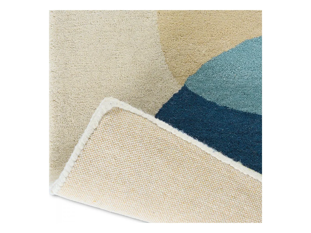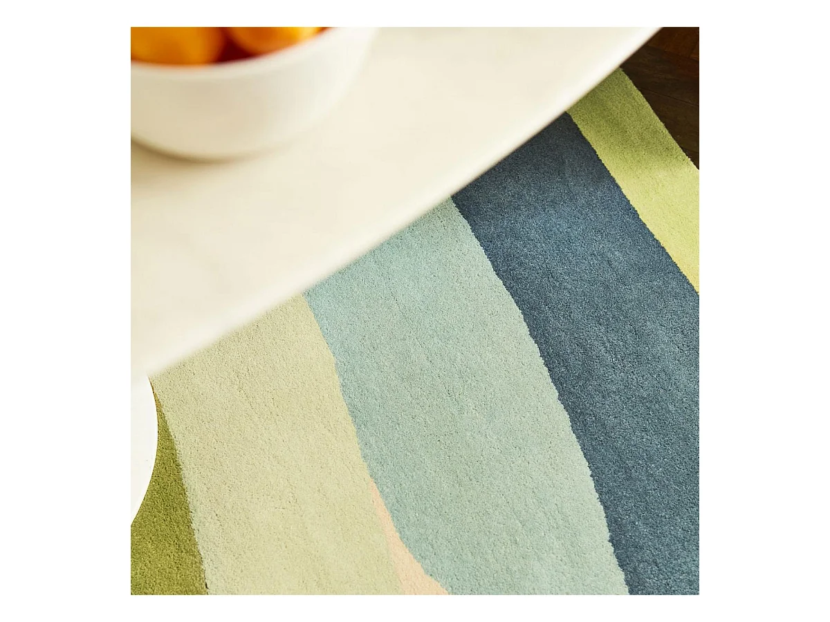 tapis entrée 140x200 fait à la main en laine vert et bleu motif géométrique