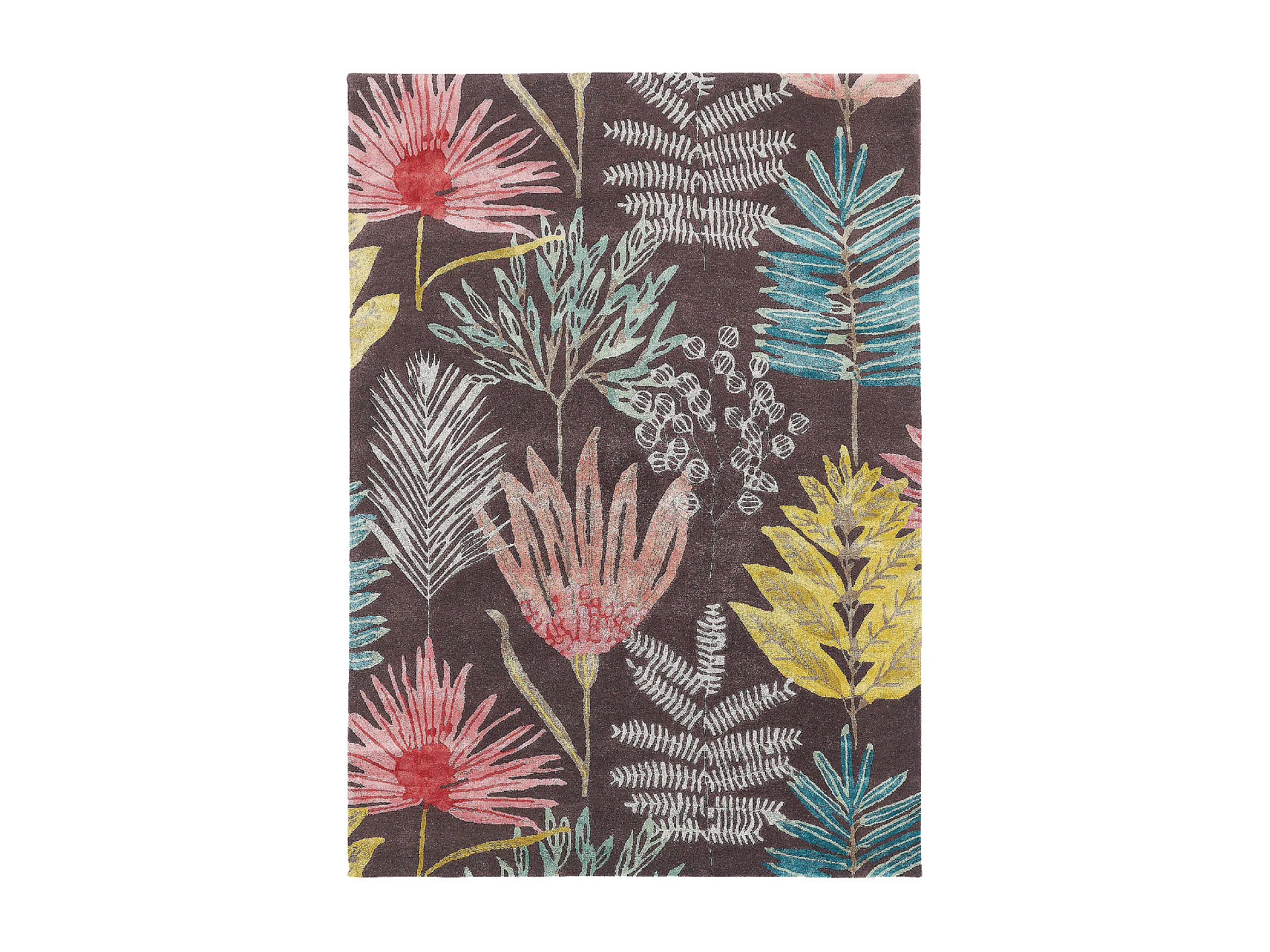 tapis chambre 170x240 fait à la main en laine marron et jaune motif floral