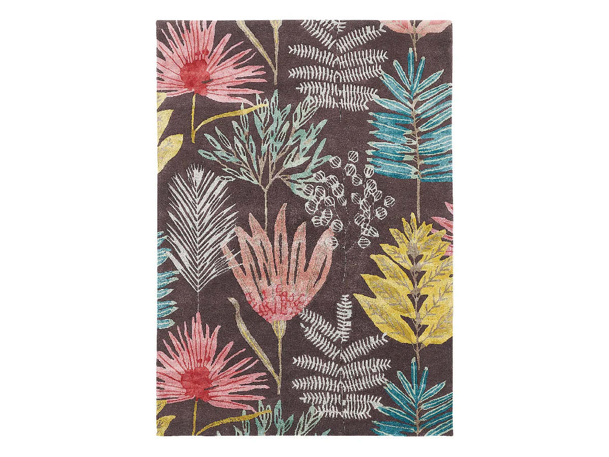 tapis chambre 200x280 fait à la main en laine marron et jaune motif floral