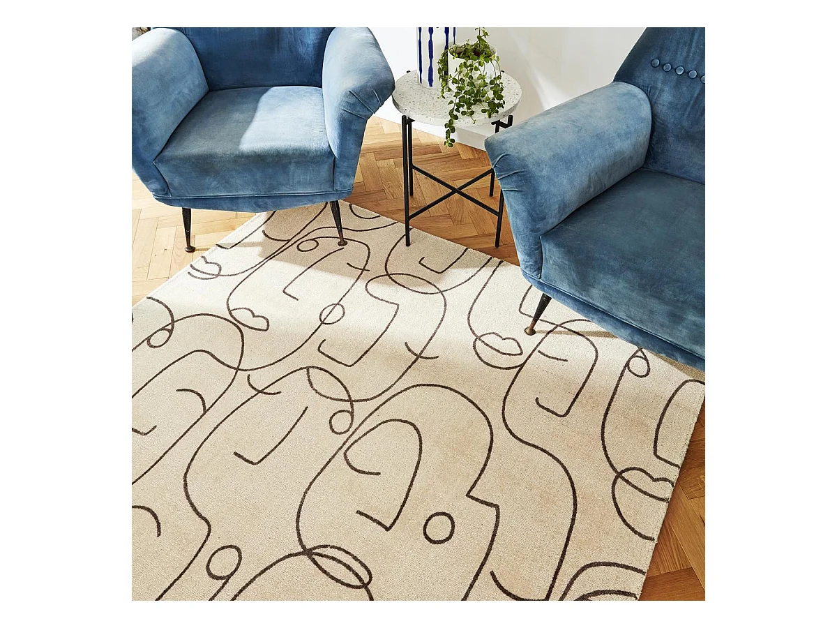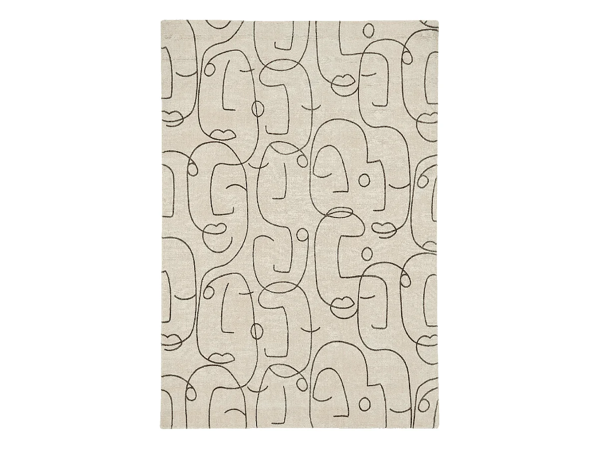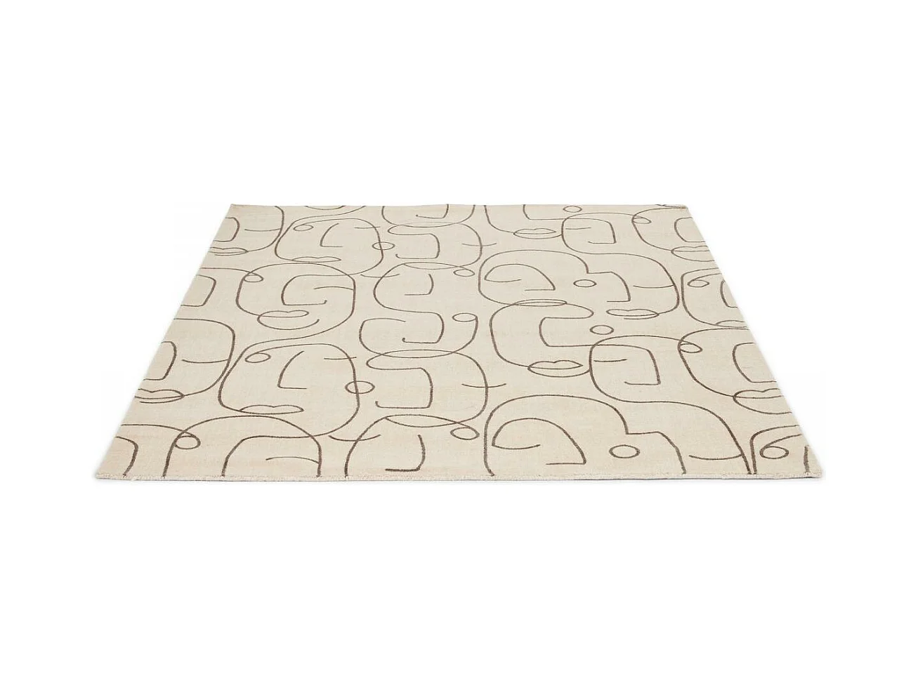 tapis chambre 200x280 fait à la main en laine beige rectangle motif abstrait