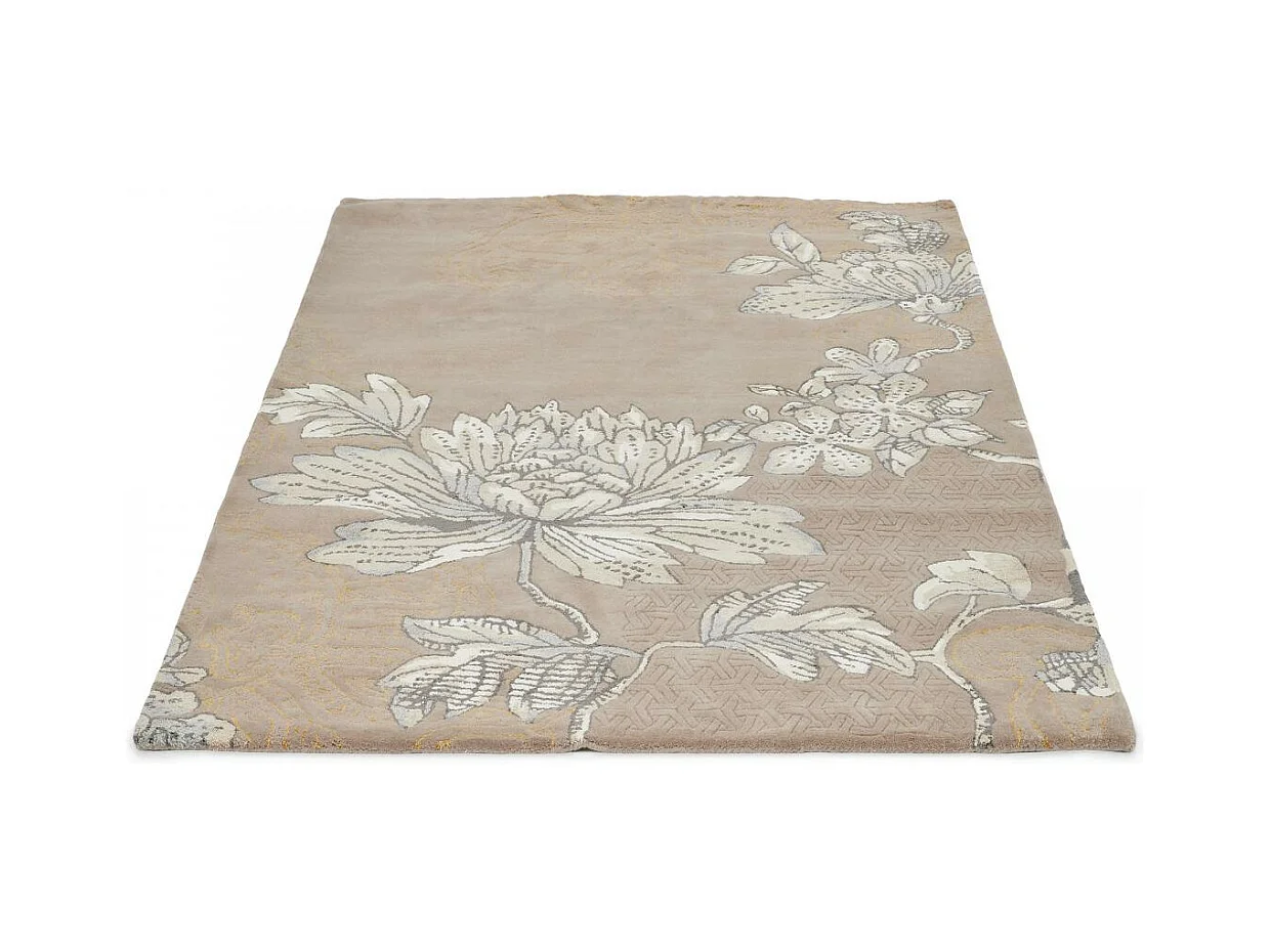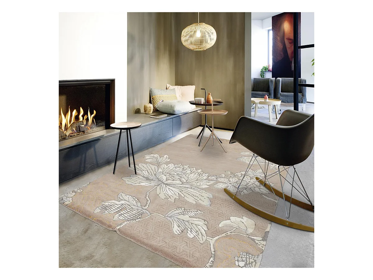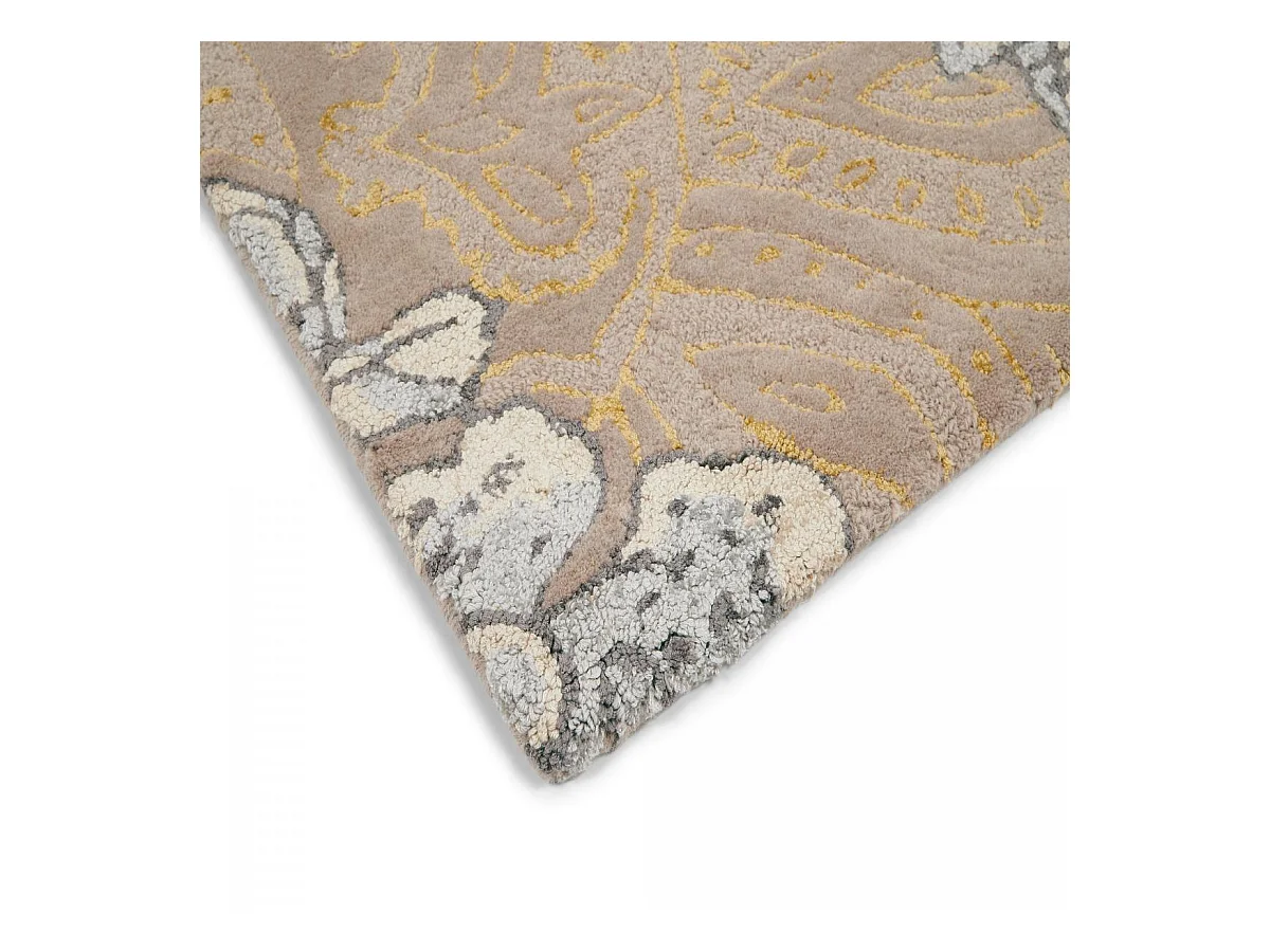 tapis chambre 120x180 fait à la main en laine gris et crème motif floral