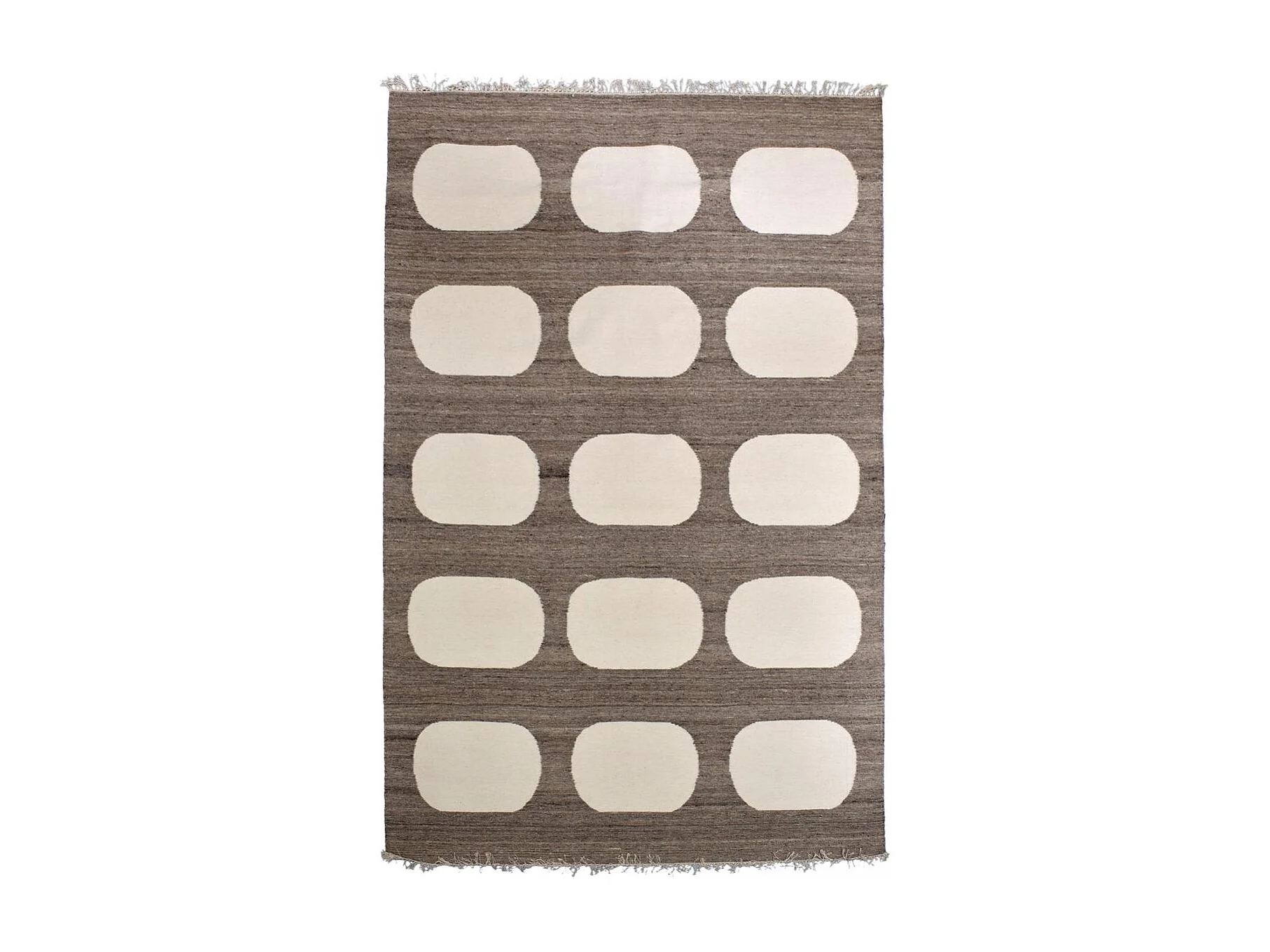 tapis salle à manger 200x300 fait main en laine beige et marron motif rond