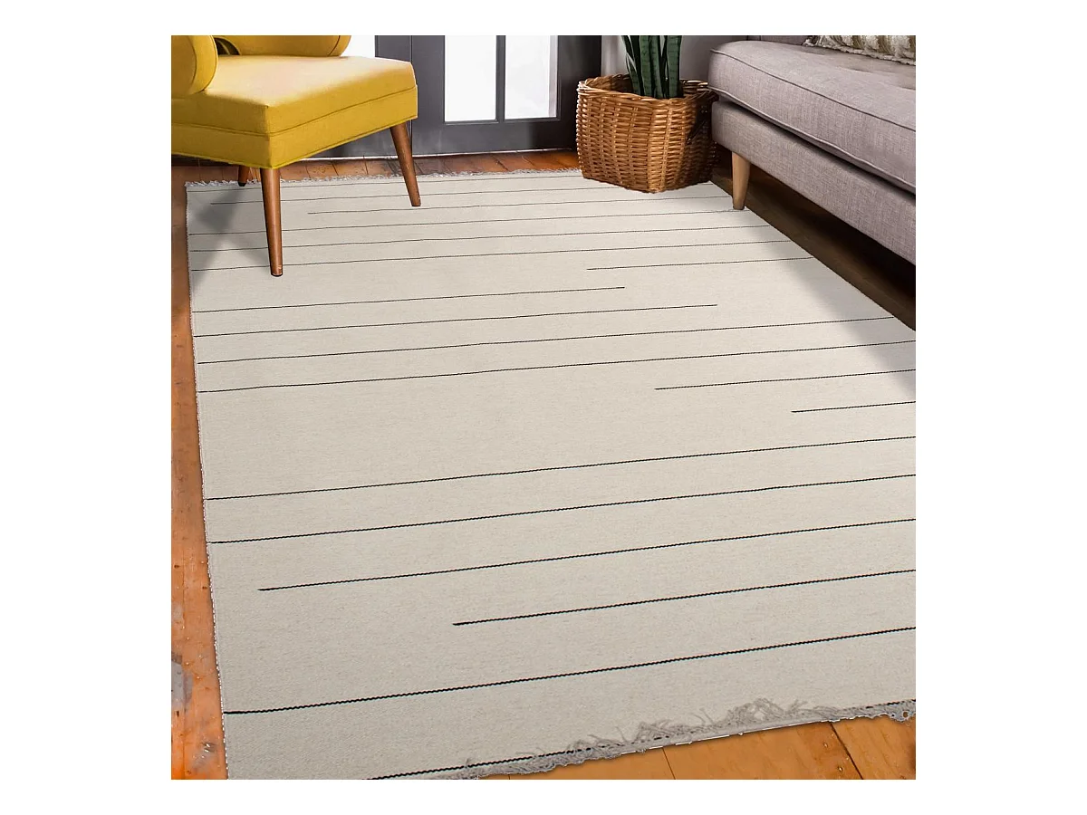 tapis salon 160x230 fait main en laine beige rectangle motif simple NIMBUS