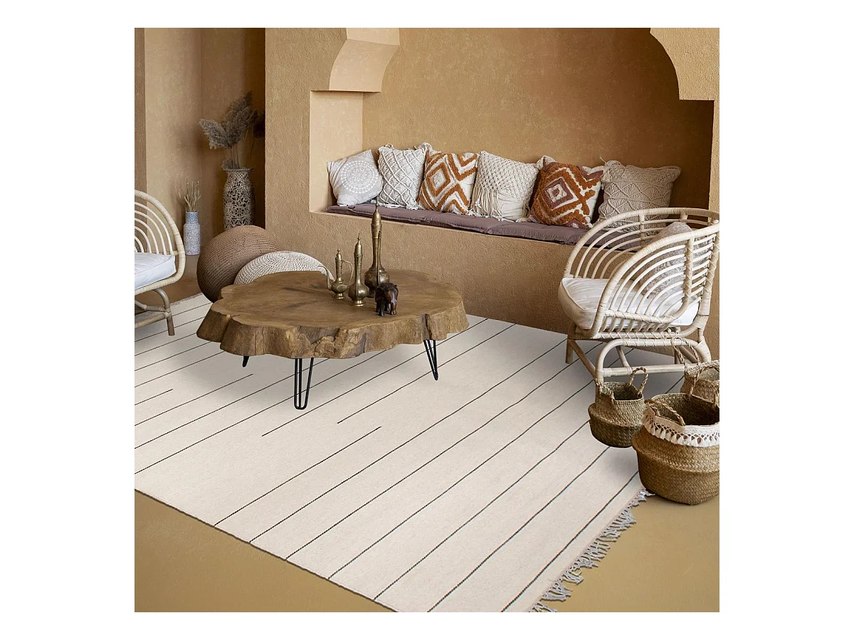 tapis grand salon 250x350 fait main en laine beige rectangle motif simple NIMBUS