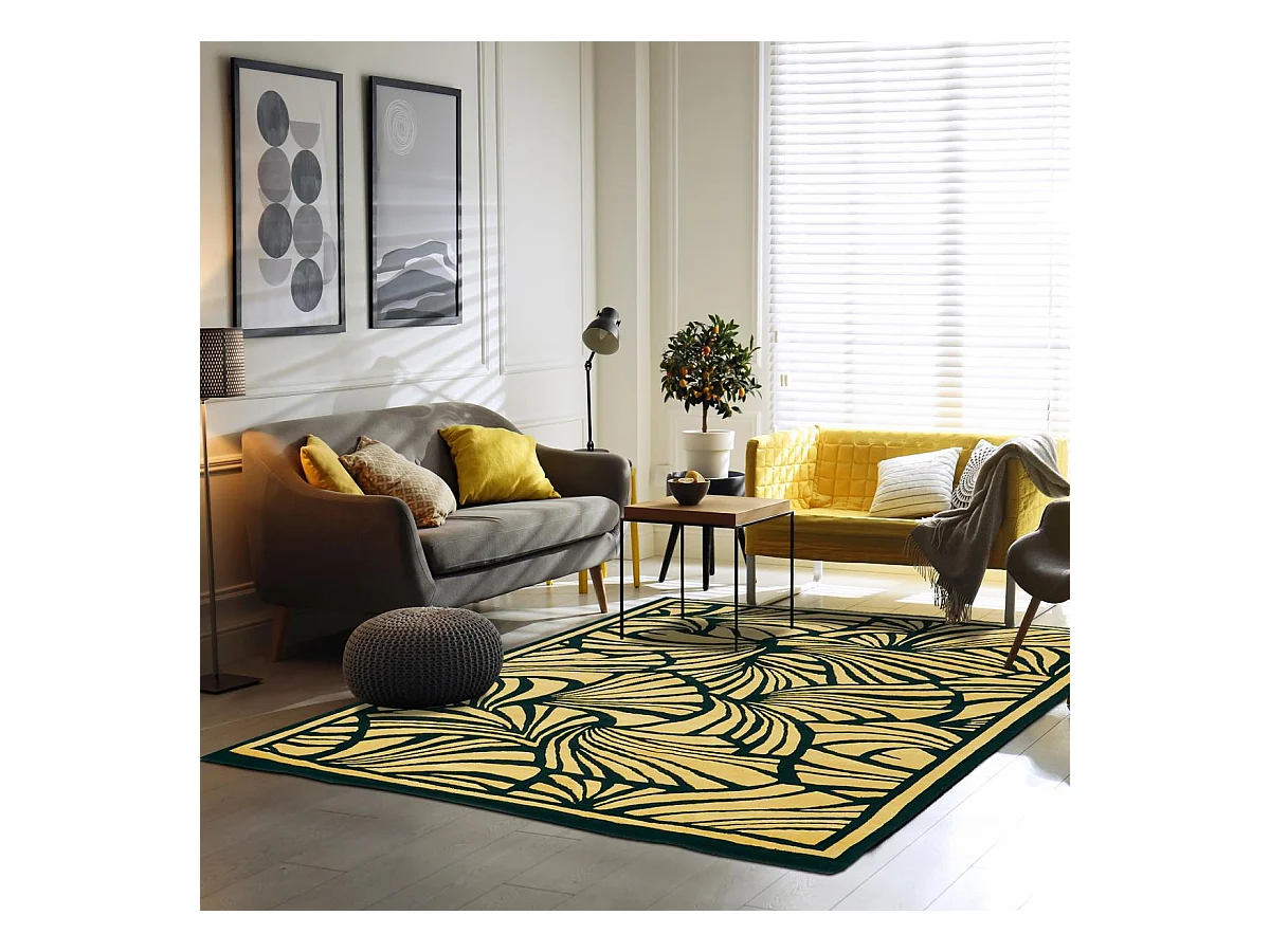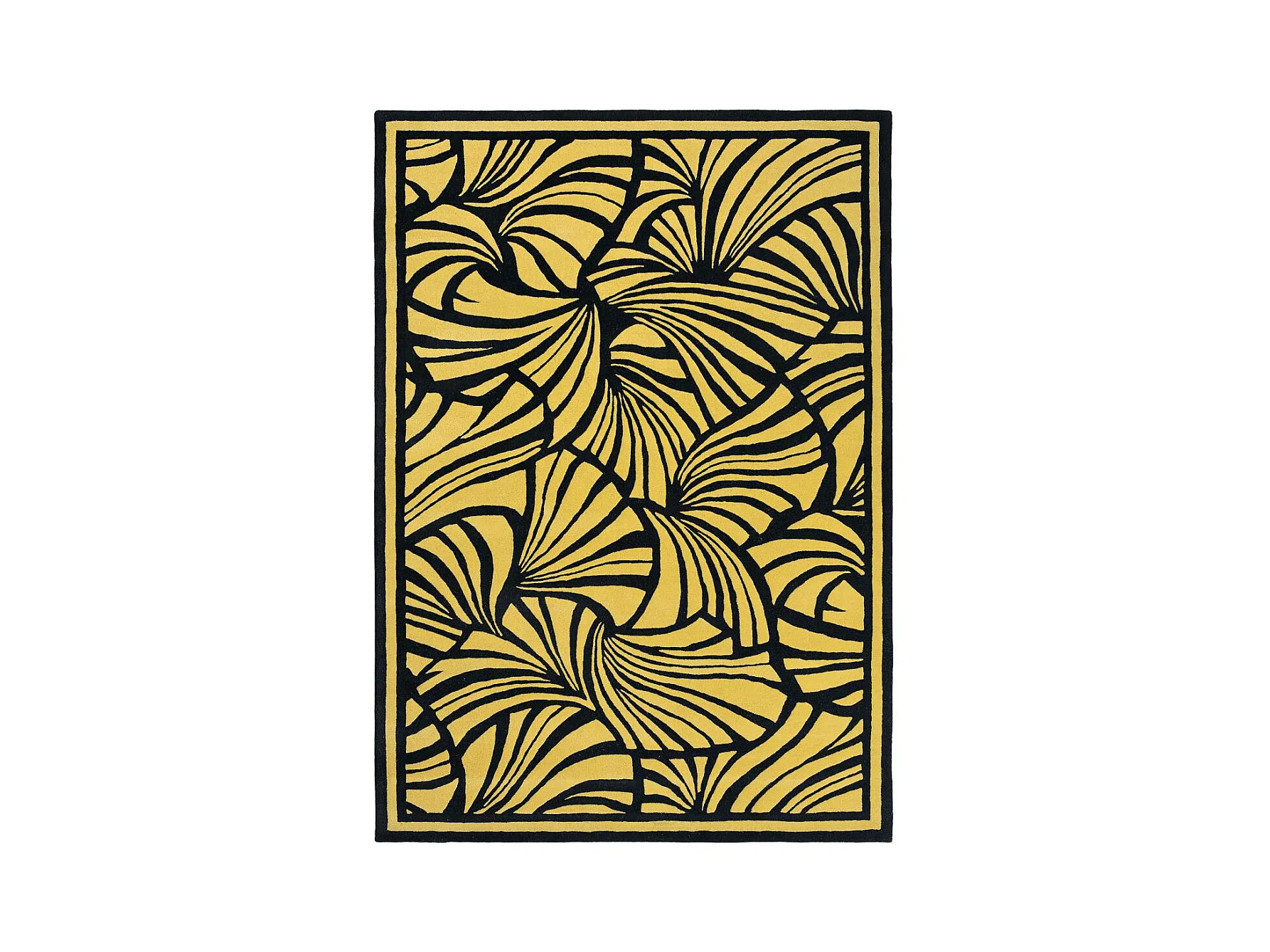 tapis chambre 200x280 fait à la main en laine or et noir rectangle motif abstrait