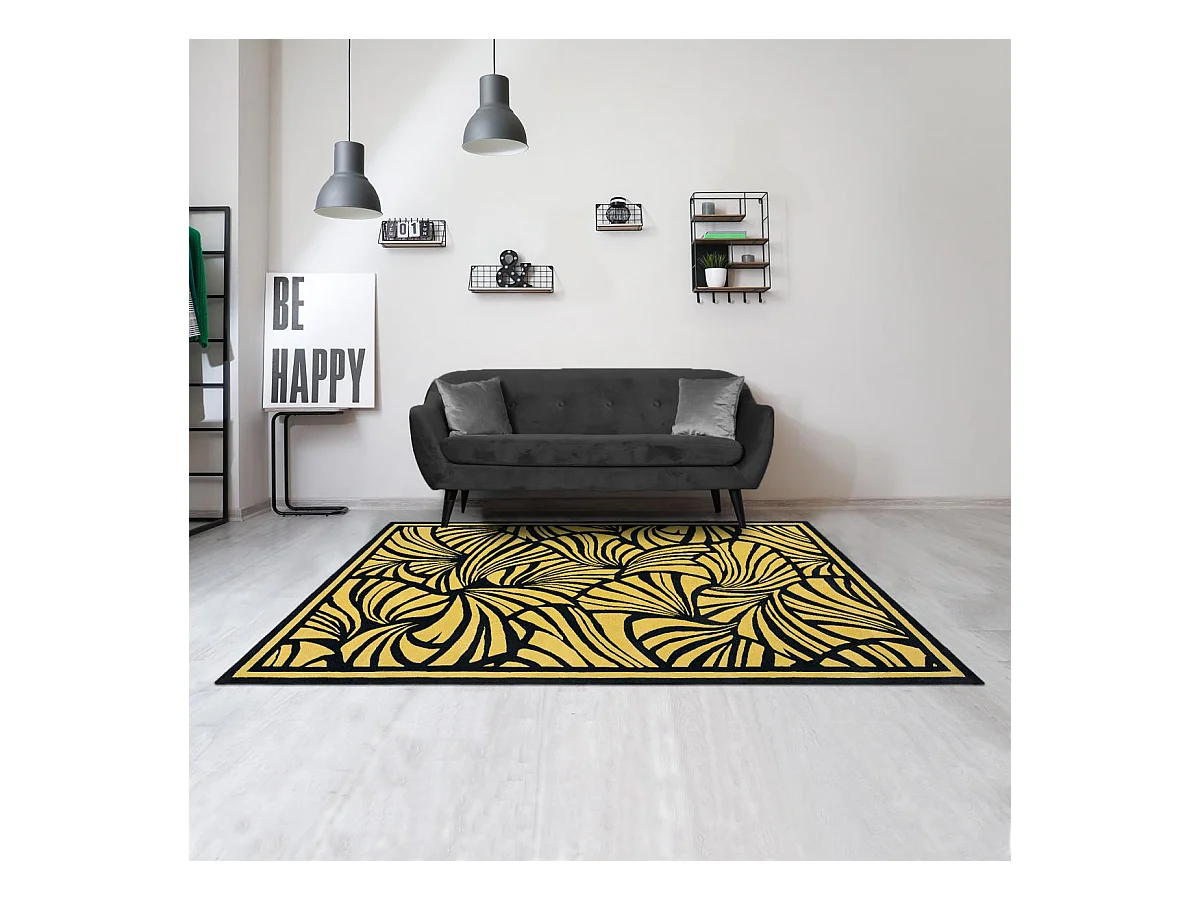 tapis open space 250x350 fait à la main en laine or et noir motif abstrait