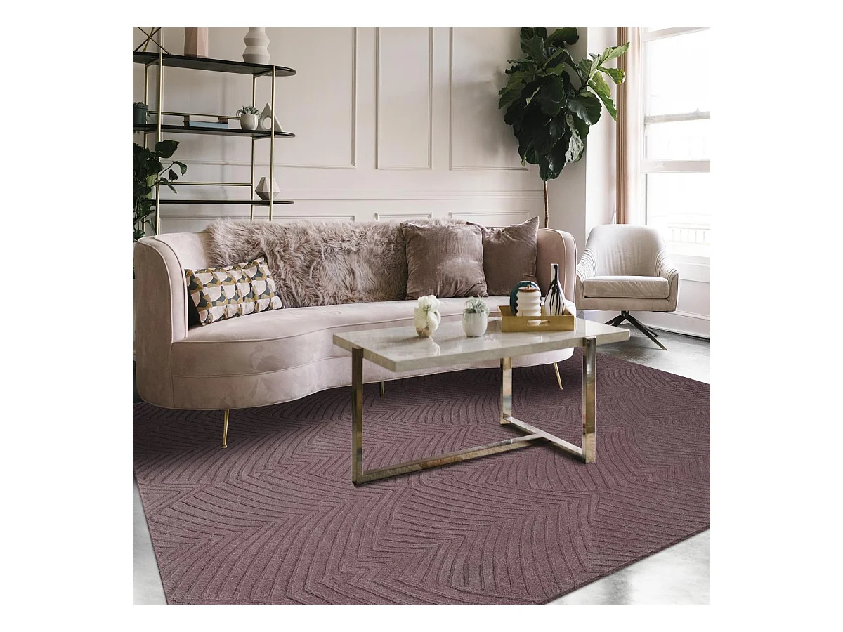 tapis salon 200x280 fait à la main en laine bordeaux rectangle motif faux uni