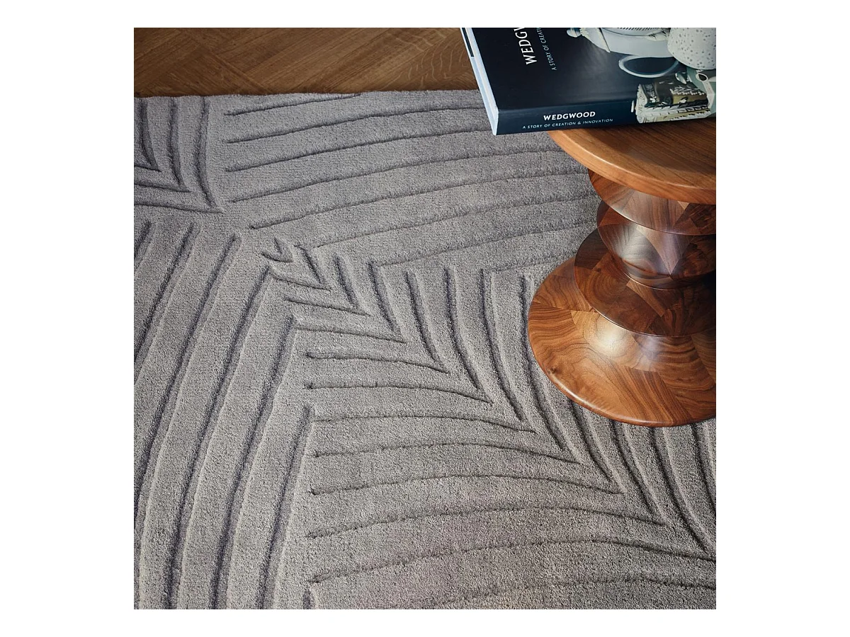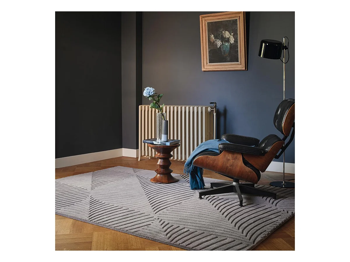 tapis salon 200x280 fait à la main en laine gris rectangle motif faux uni FOLIA