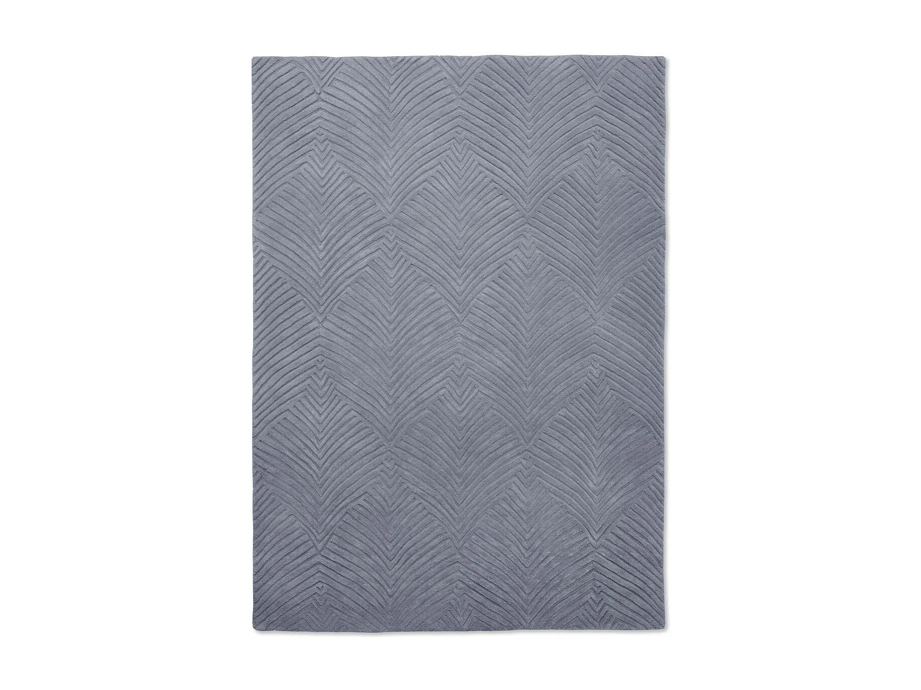 tapis salle à manger 250x350 fait à la main en laine bleu et gris motif faux uni